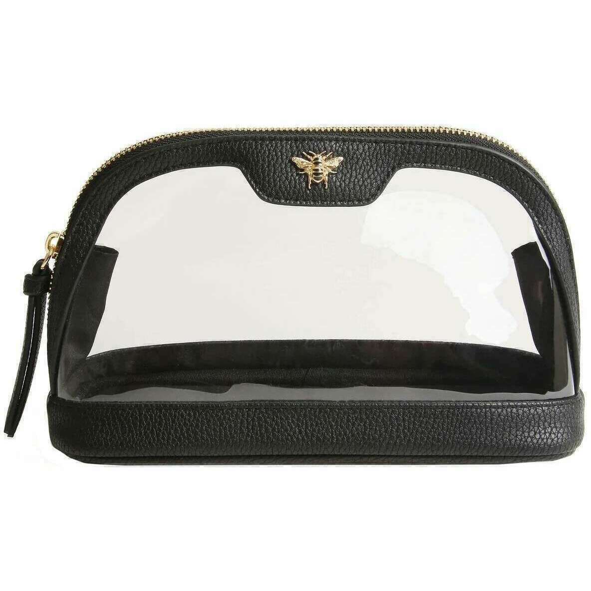 Introducing this women's clear makeup bag by Alice Wheeler London, it is manufactured from premium pvc and textured vegan faux leather in a black colour. It measures 13cm(height) x 22cm(width) x 8cm(depth). All the bags come complete with alice wheeler packaging. The Alice Wheeler London Clear Makeup Bag - Black combines practicality and style, giving you an accessory that will organise your essentials and look good doing it. Unzip it to find a spacious interior to make sure all of your makeup routine fits without having to compromise. Perfect for travelling with or just to store your makeup at home. Complete with the signature honeybee logo adorned to the top of this bag.