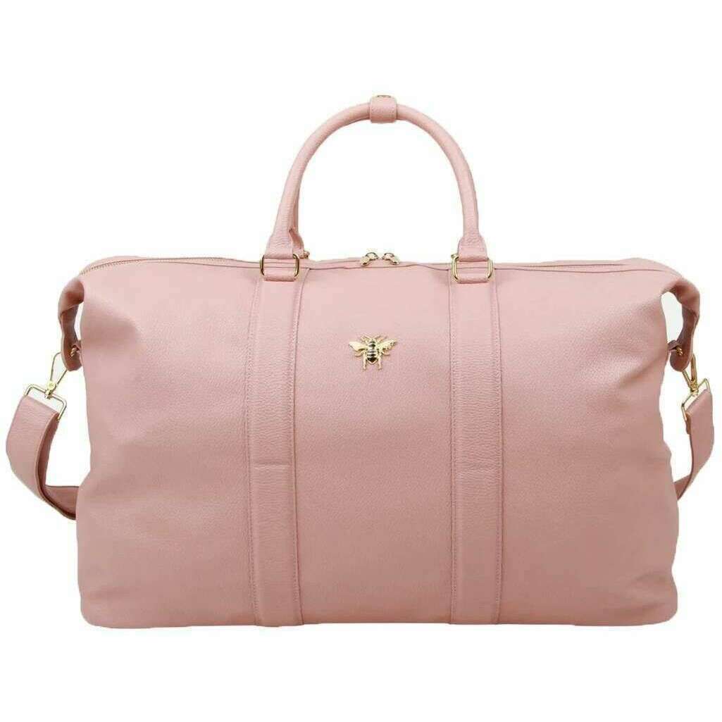 This well made women's marylebone weekend bag from Alice Wheeler London comes in a pink colour and is manufactured from 100% vegan faux leather. It measures 30cm(height) x 50cm(width) x 28cm(depth). All the bags come complete with alice wheeler packaging. The Alice Wheeler London Marylebone Weekend Bag - Pink is a must-have if you are a frequent traveller or carry heavy. Perfect for weekend aways, taking to the gym, or having for a carry-on bag. Featuring two carry handles great for wearing on your shoulders, a detachable long shoulder strap, internal pockets for organising and storage, and a lightweight wear for ease when carrying. The sleek and simple design with the signature honey bee logo adorned to it completes this bag making you look the part when on the go.