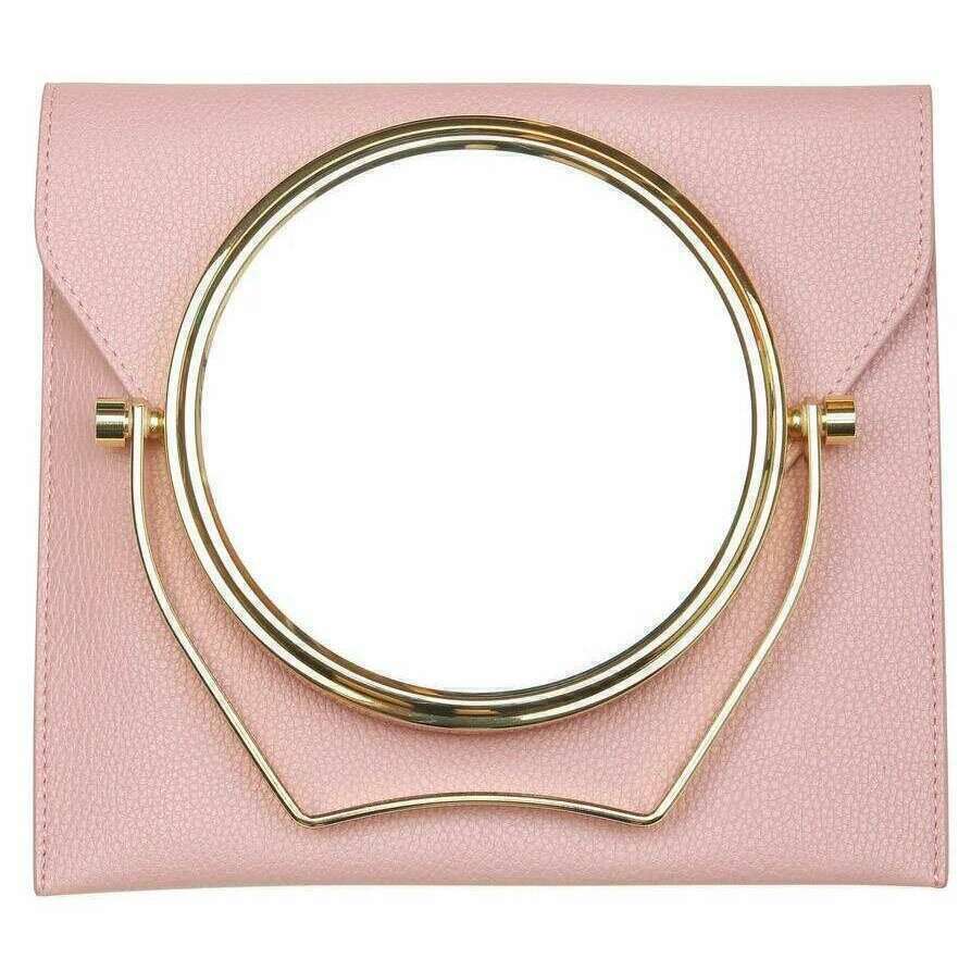 Manufactured from 100% vegan faux leather is this pink women's mirror and case by the designer Alice Wheeler London. It measures 18.5cm(height) x 20.5cm(width). It is recommended to wipe clean with damp cloth to keep this compact in good condition. All the compacts come complete in alice wheeler london packaging. The Alice Wheeler London Mirror and Case - Pink is a stylish accessory and extremely handy to carry with you when on the go. The beautifully embellished bee logo sits on the front of the case and the press stud closure secures the mirror inside. Inside you will find a 7x magnification mirror with a stand so that you can check up on yourself with ease.