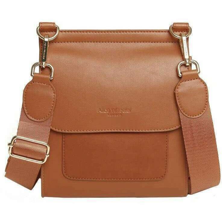 Introducing this women's seville crossbody bag by Alice Wheeler London, it is manufactured from 100% vegan faux leather in a tan colour. It measures 20cm(height) x 18cm(width) x 6cm(depth). It is recommended to wipe clean with damp cloth to keep this bag in good condition. All the bags come complete with alice wheeler london packaging. The Alice Wheeler London Seville Crossbody Bag - Tan will make a stunning and stylish everyday bag or will accessorise your evening outfit when at a more formal event. Fitted with an adjustable cross body strap you can find a length that best suits you for comfortable carrying. The Seville offers a good-sized main section and is secured with a flap and magnetic clasp closure. The debossed and elegant rounds off this gorgeous design as well as named branding on the back.
