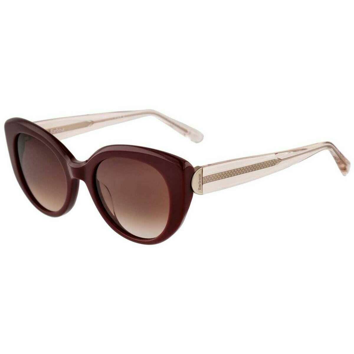 Introducing these women's chunky round sunglasses by Barbour, they are manufactured from 100% acetate renew in a burgundy/cocoa crystal colour. It measures 5cm(lens width) x 2cm(bridge width) x 14cm(temple length). All the sunglasses come complete with barbour packaging. The Barbour Chunky Round Sunglasses - Burgundy/Cocoa Crystal feature the classic cat eye design. These bold sunglasses have an eye-catching aura and exude femininity and confidence. The handcrafted easily adjustable acetate frame ensures a comfortable wearing experience. Complete with polarized lenses to keep your eyes protected.