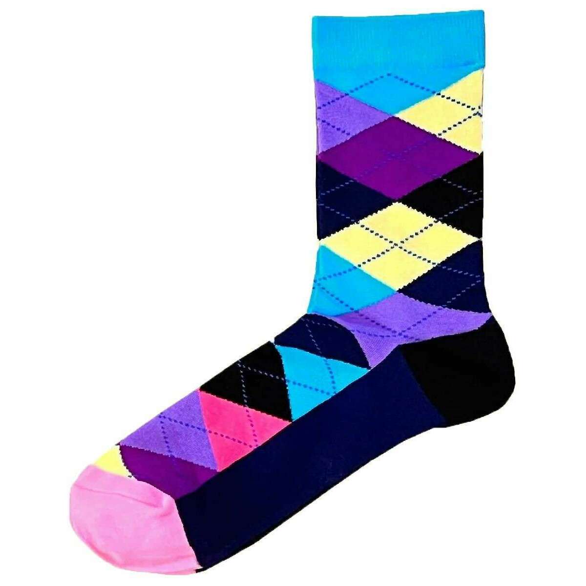 Bassin and Brown Argyle Socks - Turquoise/Yellow/Purple