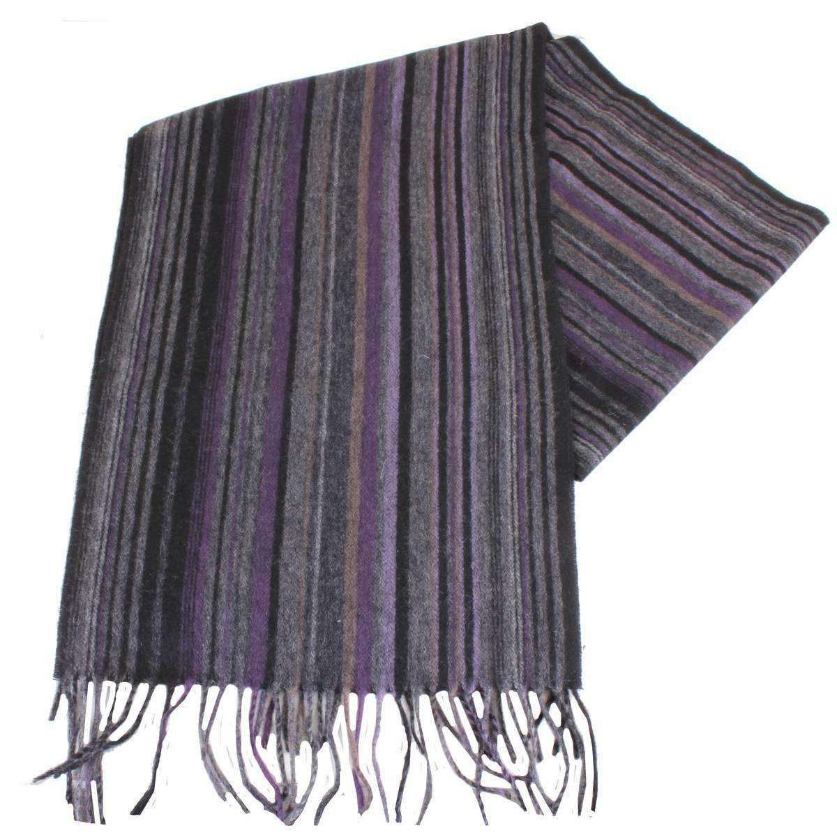 Bassin and Brown Stefano Striped Wool Scarf - Purple/Grey