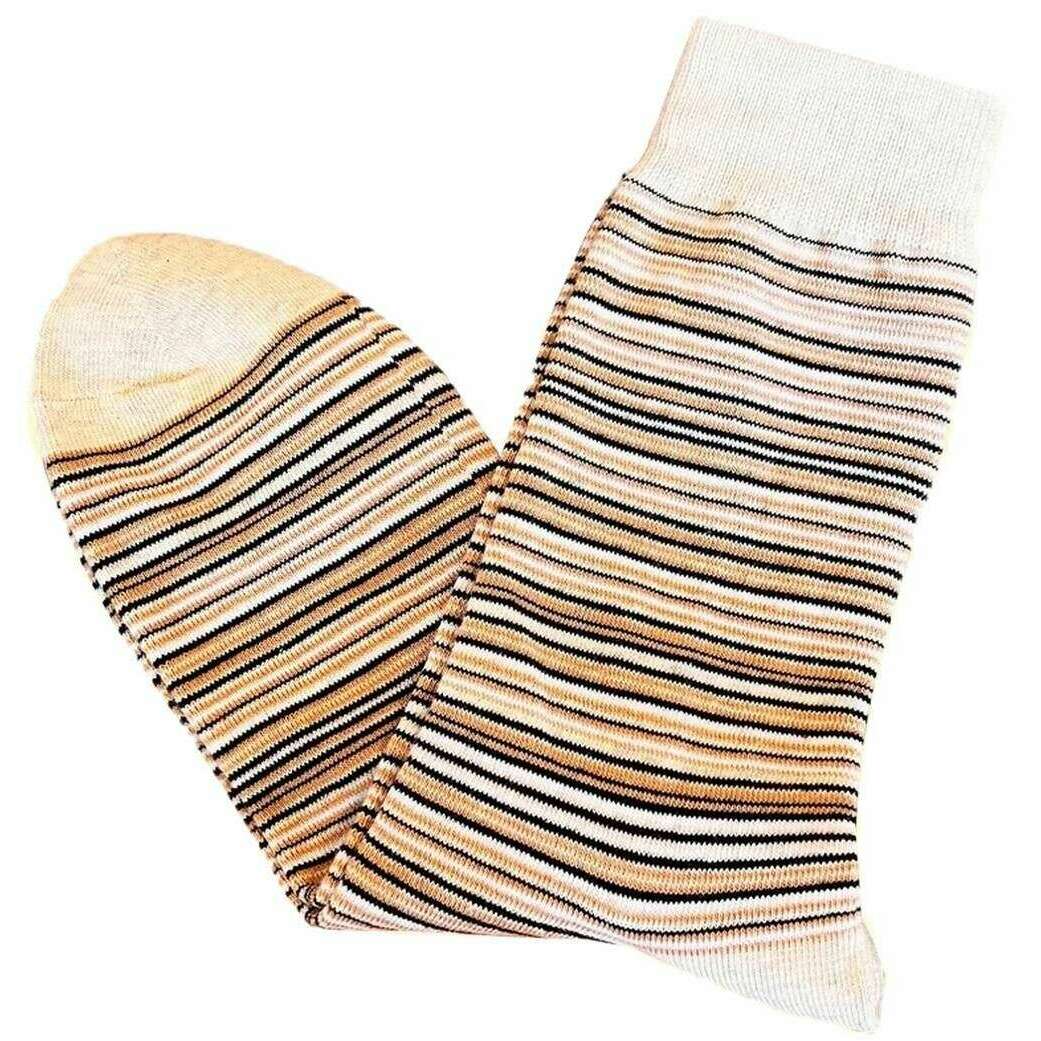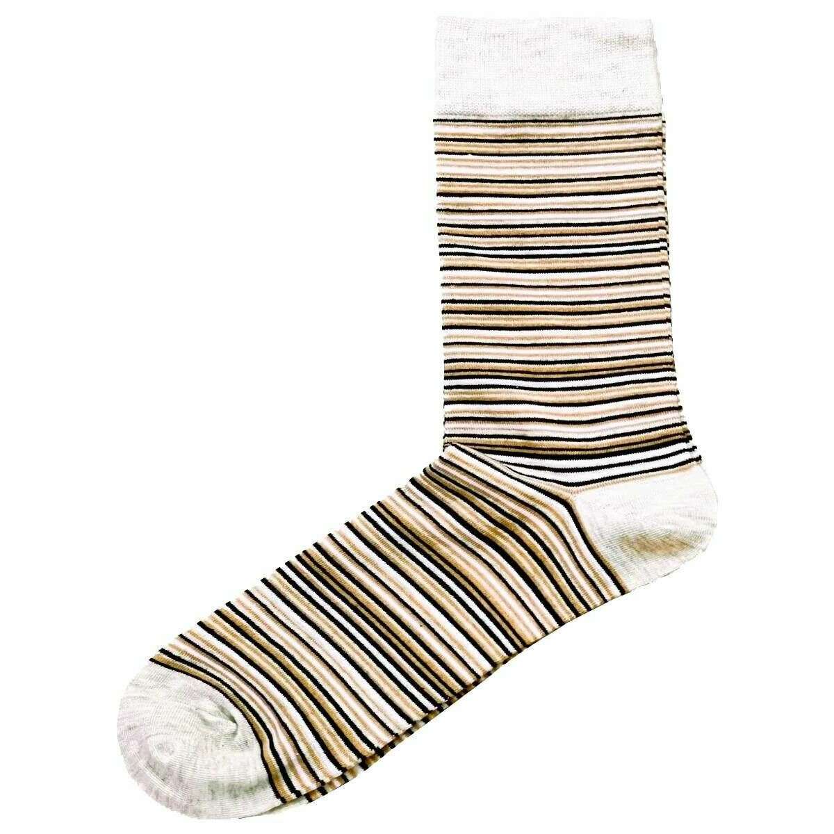 Bassin and Brown Westcotte Multi Thin Stripe Socks - Beige/Fawn/Black