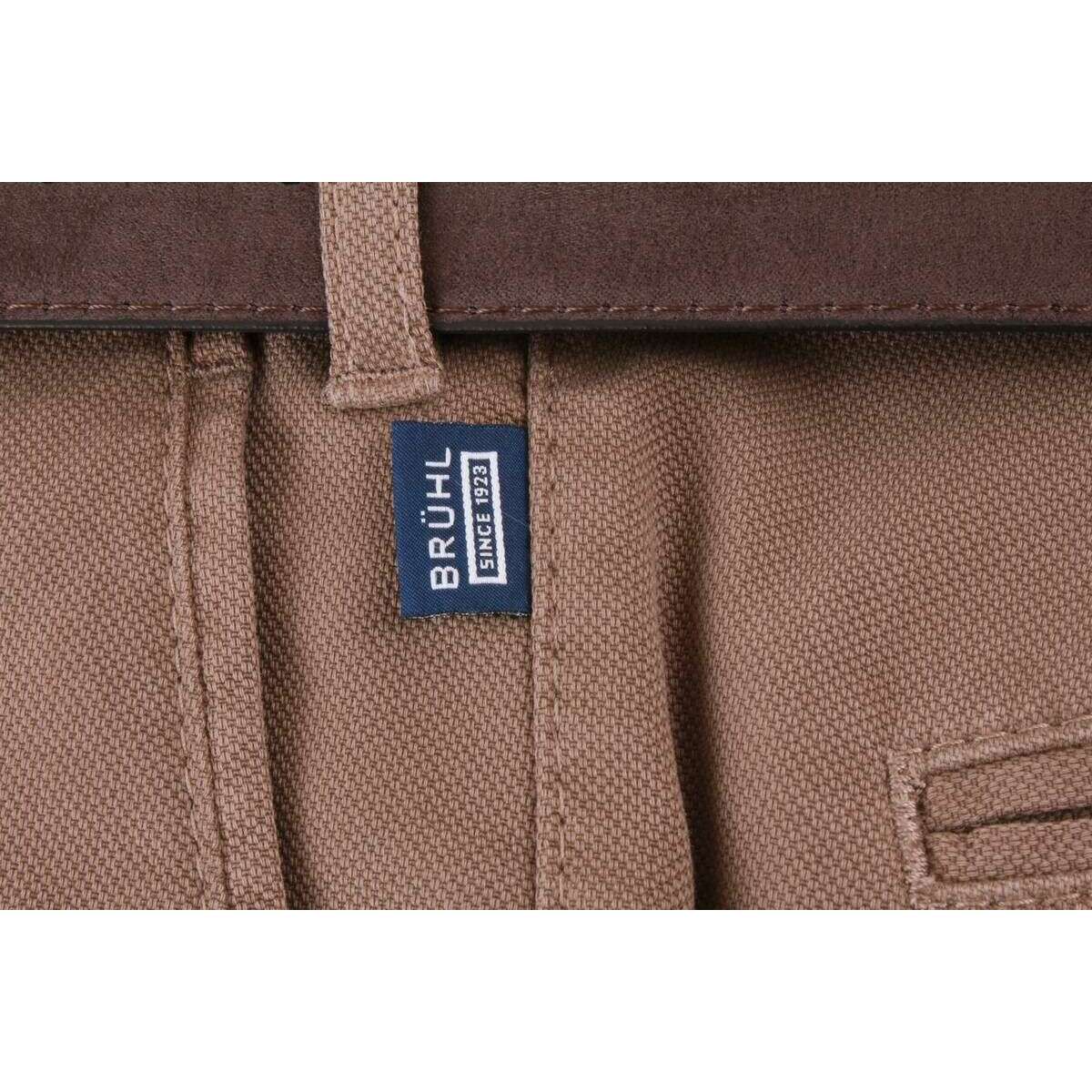 These men's parma b mover high stretch peached chinos by the brand BRUHL are made from 98% cotton and 2% elastane and are showcased in brown. Also the putty brown trousers are designed in a plain pattern, It is recommended to wash at 40 degrees to keep these trousers in good condition. All the trousers come complete with bruhl tags. The BRUHL Parma B Mover High Stretch Peached Chinos - Putty Brown are designed to deliver comfort, flexibility, and style. Made from a high-stretch fabric, these chinos allow for effortless movement throughout the day. The stretch waistband ensures a comfortable and adaptive fit, while the peached structure gives the fabric a soft and refined finish for a premium feel. These chinos feature two quarter pockets for easy access and two button-through panel pockets for secure storage. With eight belt loops, they provide a stable hold for your belt, and the bottom width of 16 inches creates a modern, tailored silhouette. Perfect for smart-casual occasions, these chinos combine practicality with elegance, making them an essential addition to any wardrobe.