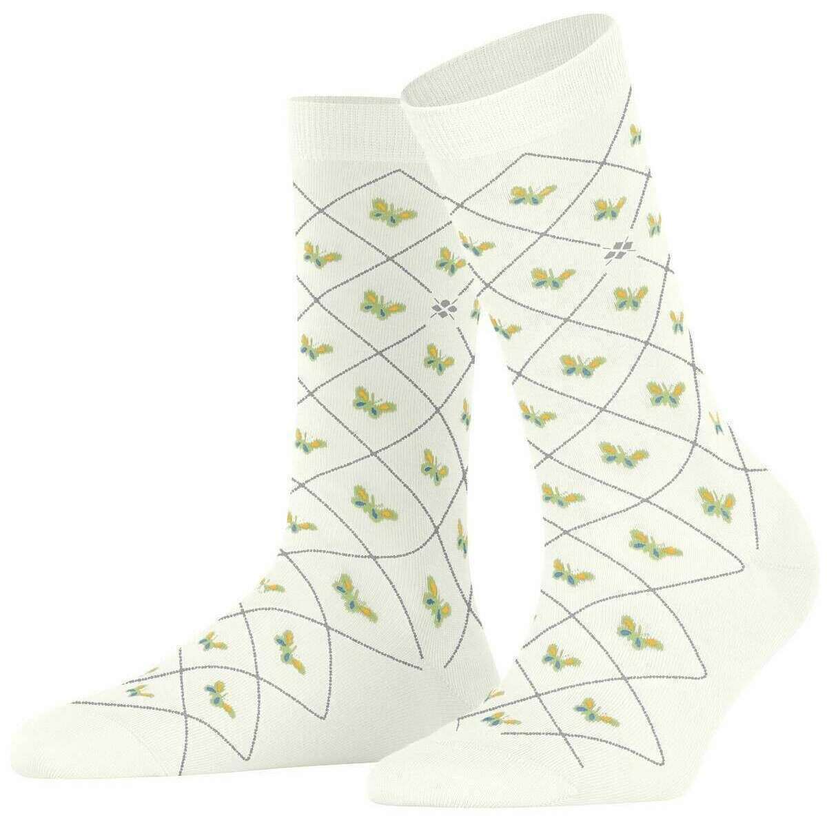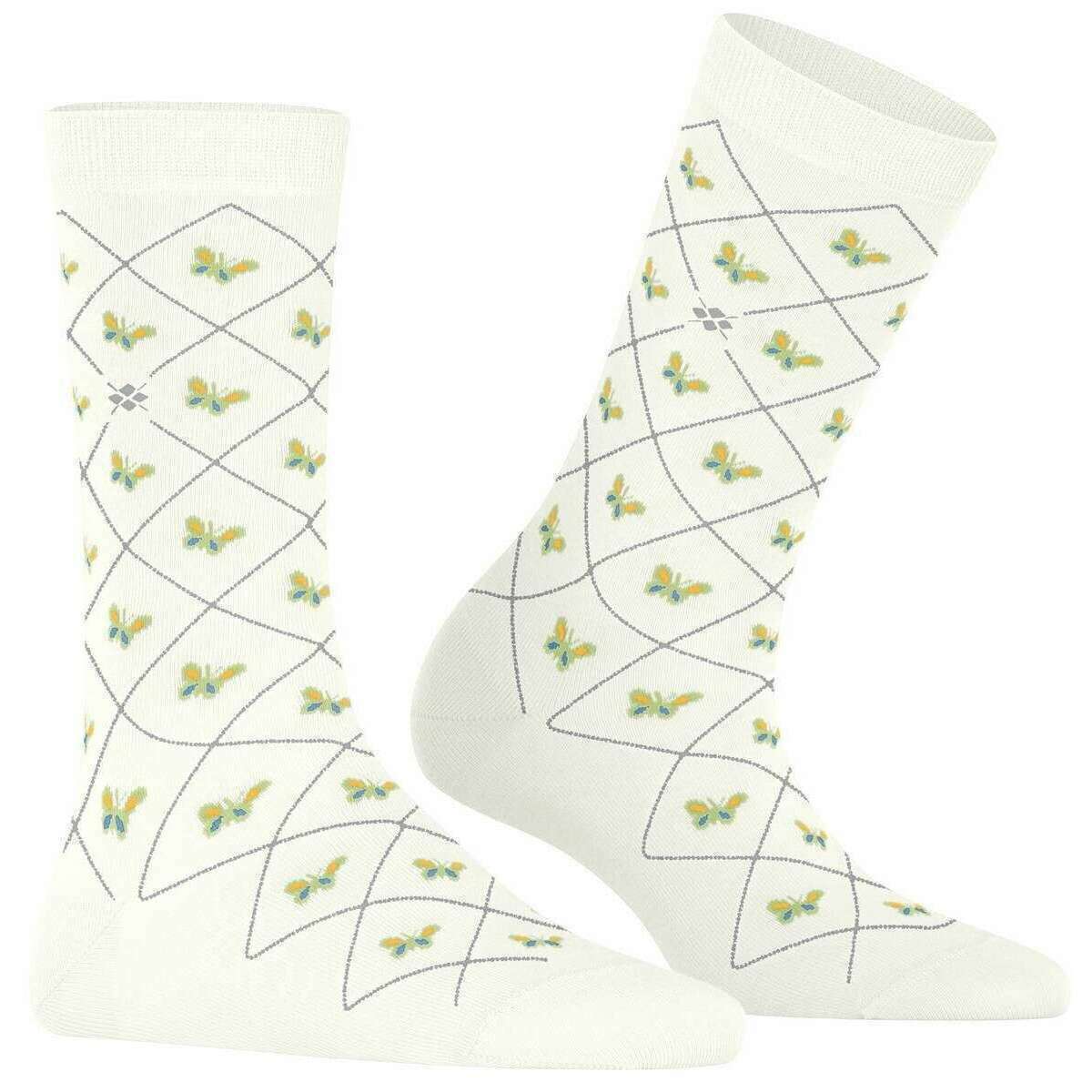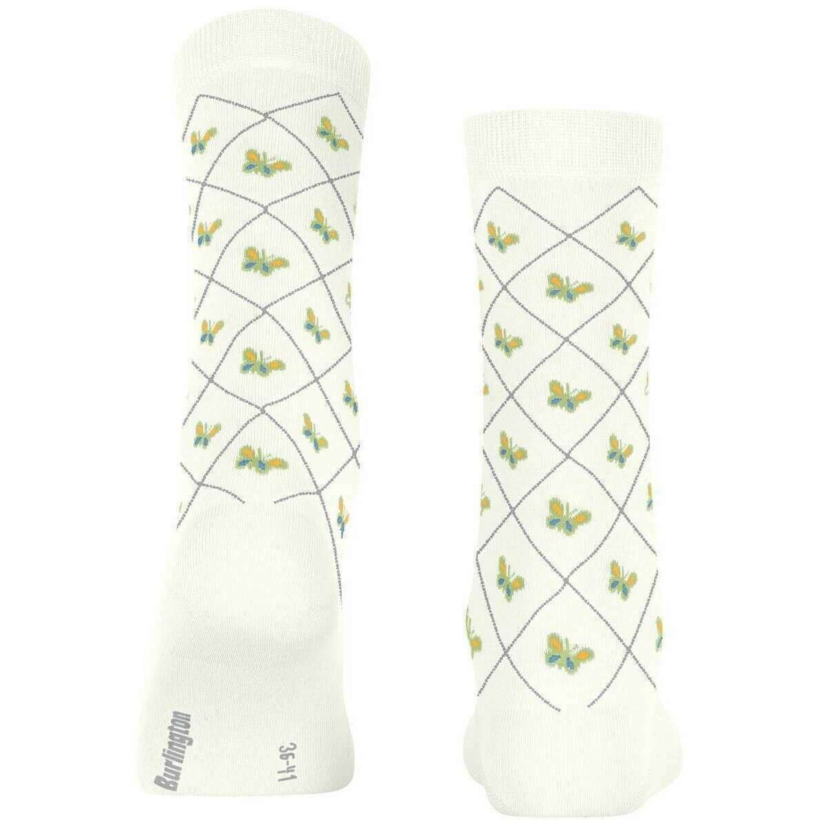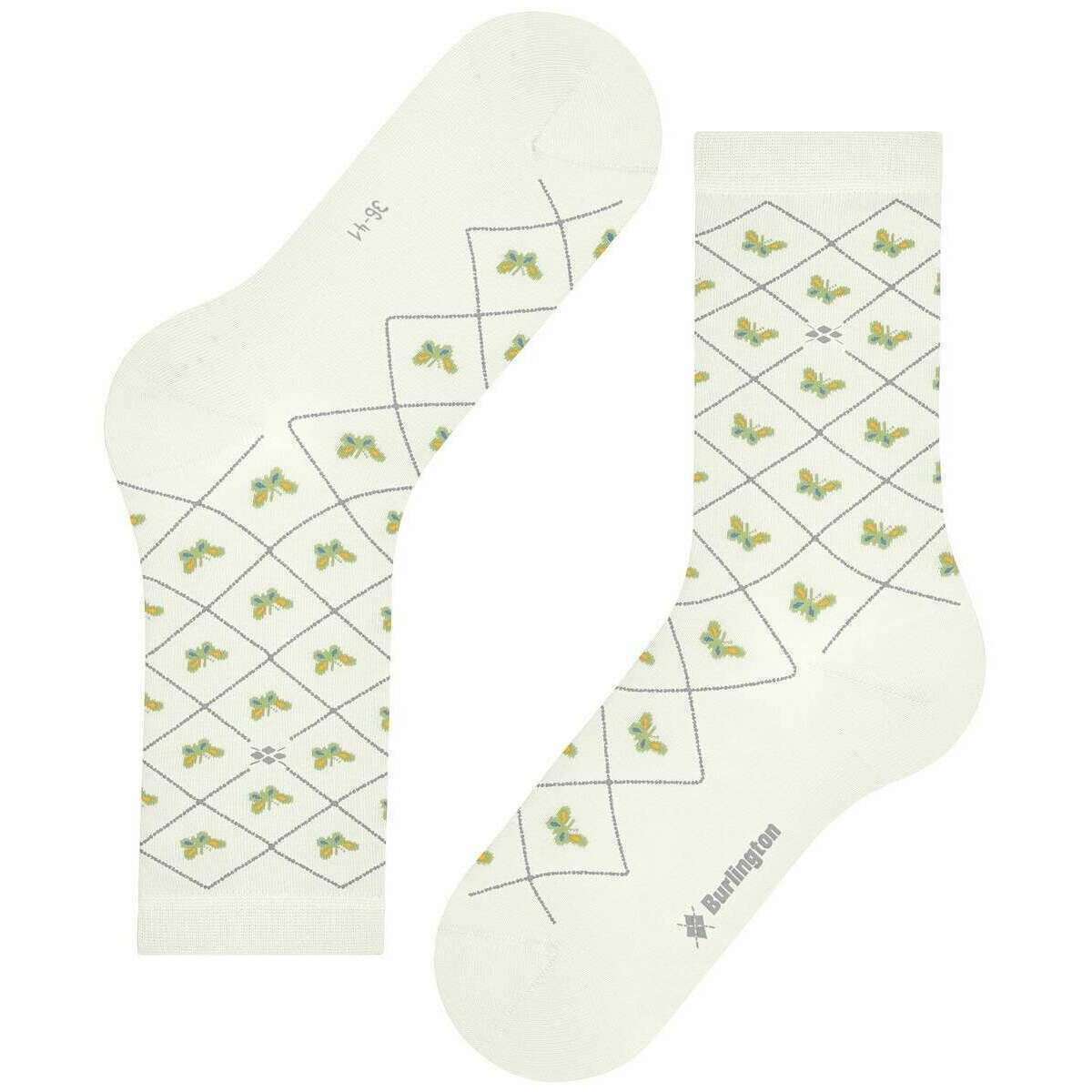 These women's british argyle socks by the brand Burlington are made from 77% organic cotton, 21% polyamide and 2% elastane and are showcased in white. Also the off-white socks are designed in a argyle pattern, It is recommended to machine wash at 40 degrees and do not tumble dry to keep these socks in good condition. All the socks come complete with burlington sock tags. The Burlington British Argyle Socks - Off-White are fun and cute with its sweet butterfly motif design combined with a classic argyle look. Perfect for spring and summer to brighten up your days and adding a subtle fashionable touch to your style. Crafted with a high cotton blend ensures this pair is great for every season. Completing this pair is the knitted-in Burlington lozenge logo.