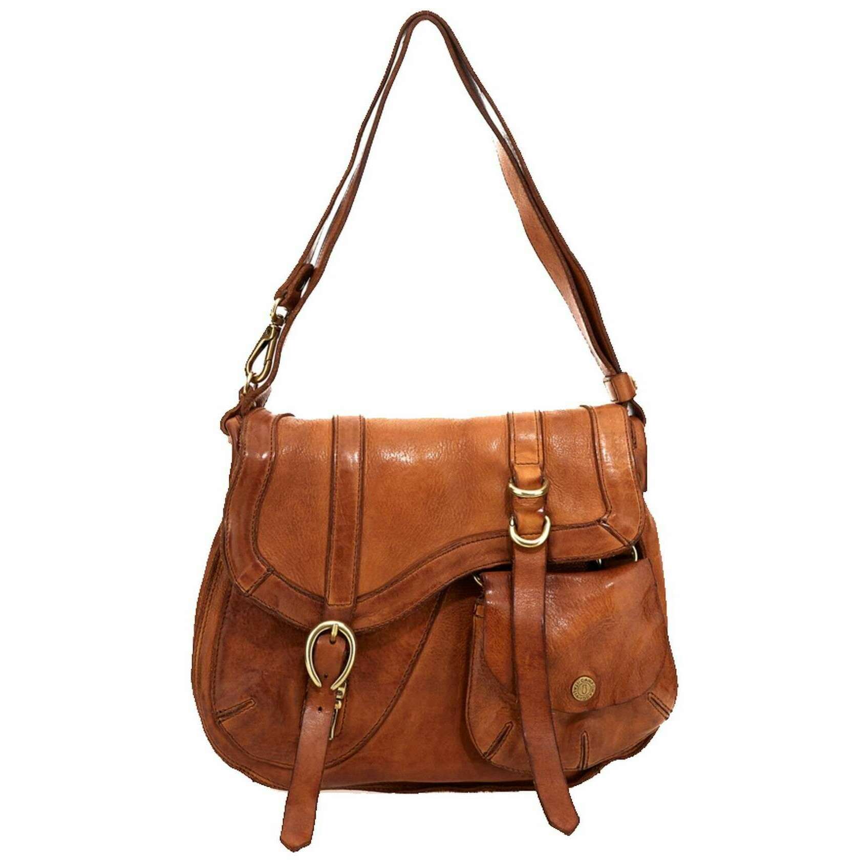 Using tan 100% cowhide leather, this arya shoulder bag by Campomaggi is perfect for women and a must have. It measures 21cm(height) x 30cm(width) x 8cm(depth). Campomaggi have made this arya shoulder bag in Italy. It is recommended to brush with a damp cloth and avoid using detergents to keep this bag in good condition. All the bags come complete with campomaggi packaging. The Campomaggi Arya Shoulder Bag - Cognac Tan vintage looking and stylish will become a great addition to your collection for whatever the occasion. Featuring an adjustable strap for versatility, a flap over tuck and lock closure for security and a large sized main compartment with a zipper pocket for optimal storage and organisation. Crafted from premium genuine leather, the bag boasts a sleek, luxurious finish while offering durability for long-lasting use. This bag features a beautiful vintage-inspired colour achieved through vegetable tanning which a traditional process that uses natural ingredients for a rich finish.