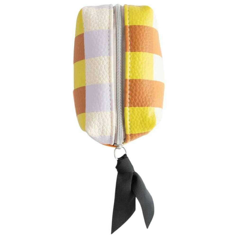 Caroline Gardner Multi Check Ultra Mini Cube Cosmetic Bag - White/Purple/Orange