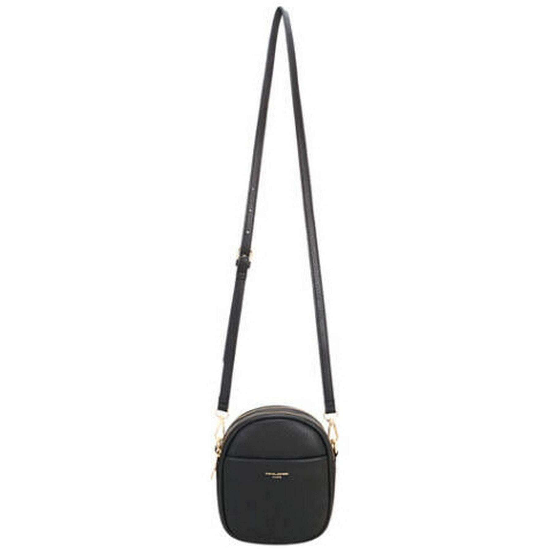 Introducing this women's double zip small cross-body bag by David Jones, it is manufactured from 100% polyurethane in a black colour. It measures 19cm(height) x 15cm(width) x 5cm(depth). All the bags come complete with david jones packaging. The David Jones Double Zip Small Cross-Body Bag - Black features a classy David Jones logo on the front pocket which is perfect for storing your phone or wallet for quick and easy access. It has a front mag dot pocket, internal zip and open pockets, a twin zip top and adjustable/detachable straps ensuring the bag will be comfortable for everyone.