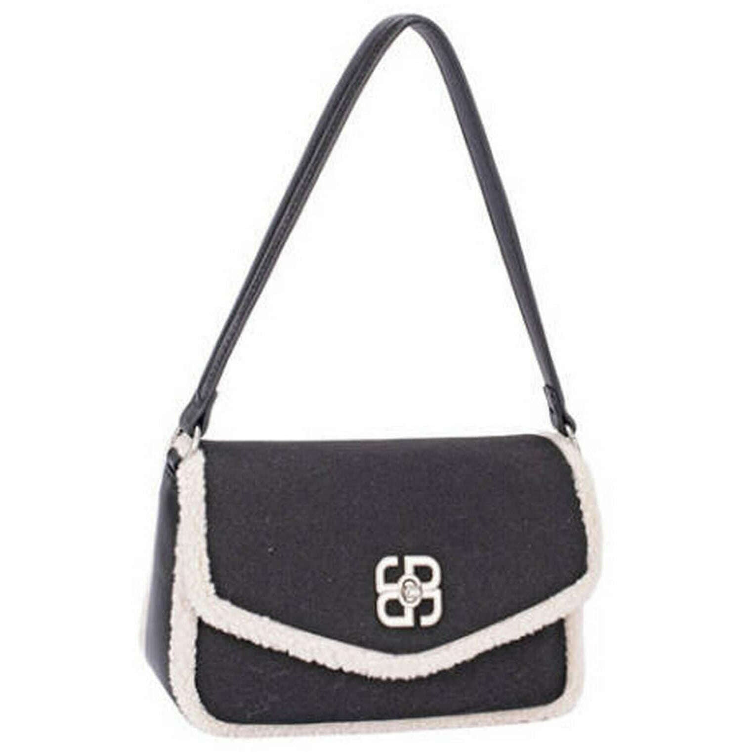 David Jones Faux Shearling Flap Shoulder Bag - Black