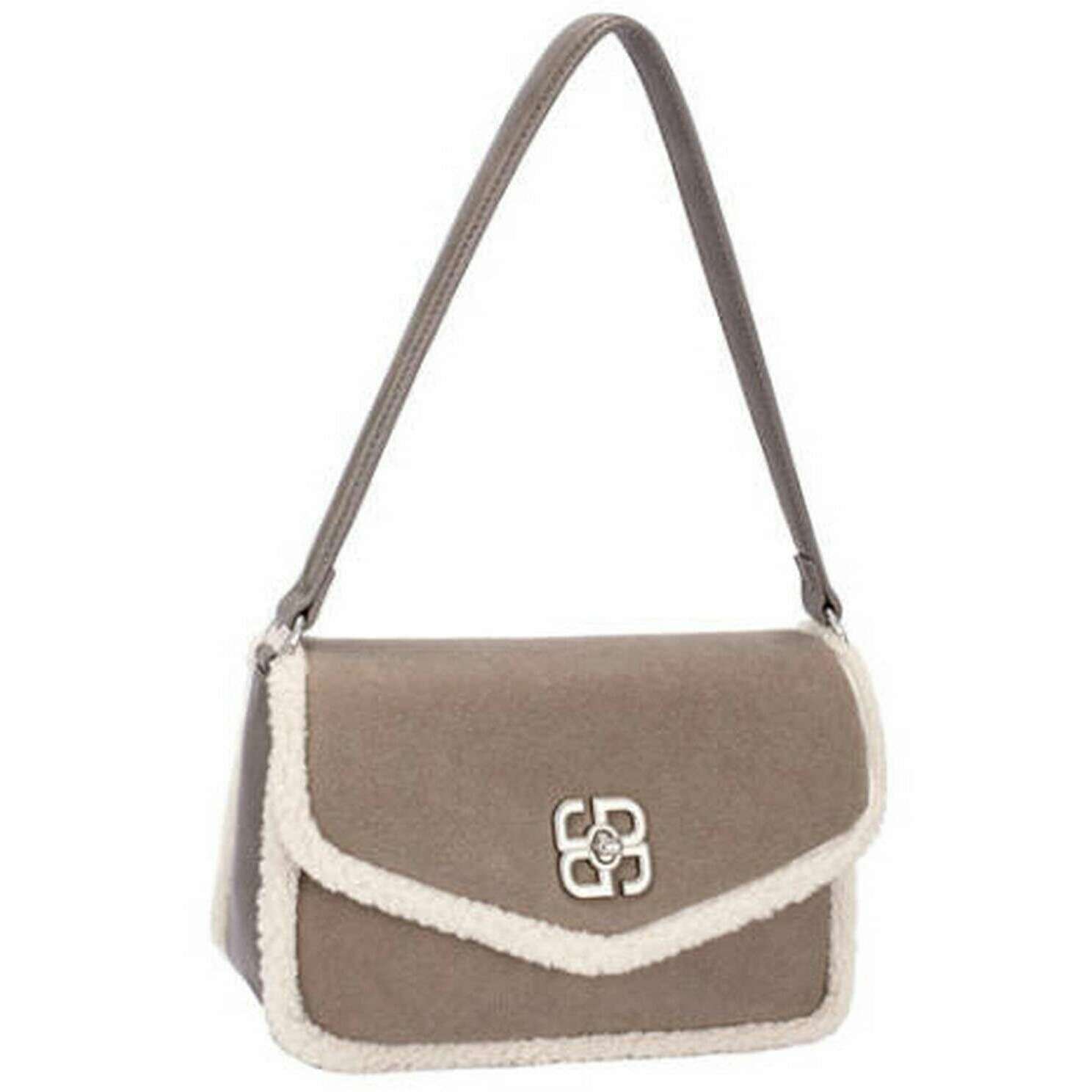 David Jones Faux Shearling Flap Shoulder Bag - Fungi Brown