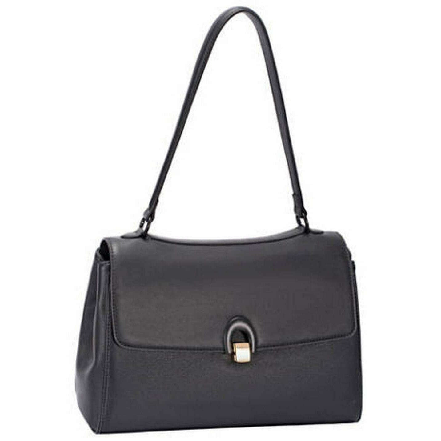 This women's large single strap smart shoulder has been made from 100% polyurethane, featured in a black colour and is from the brand David Jones. It measures 23cm(height) x 33cm(width) x 13cm(depth). All the bags come complete with david jones packaging. The David Jones Large Single Strap Smart Shoulder - Black features one dividing section with two open pockets with an internal zip and open pocket allowing you to stay organised throughout the day. The long strap means this handbag is the perfect fit for everyone. The handbag also has a metal turn lock and zip top closure to keep your things safe and secure whilst providing a classic look.