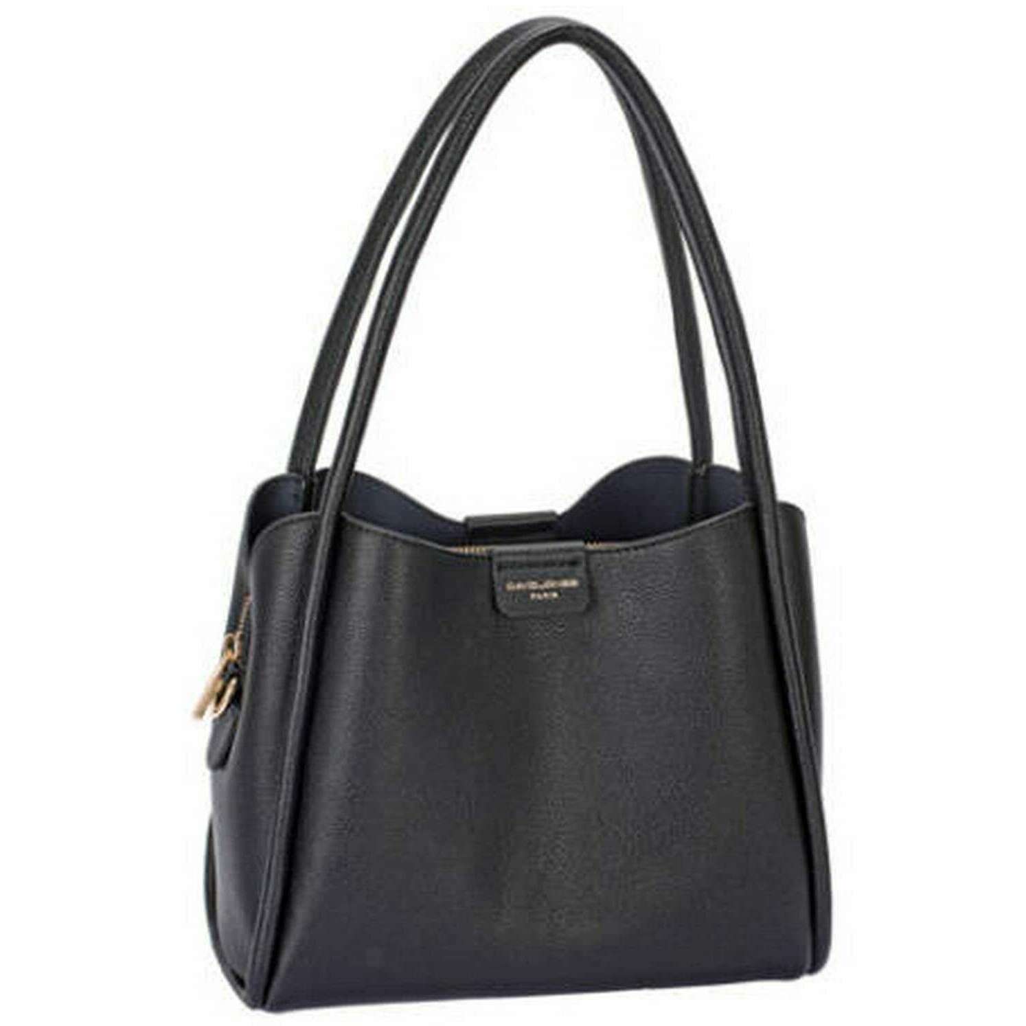 Designer David Jones has brought you this women's 100% polyurethane bag using black tones. It measures 21cm(height) x 25cm(width) x 13cm(depth). All the bags come complete with david jones packaging. The David Jones Multi Pocket Tote Bag - Black luxurious, girly and practical is the perfect bag to carry everywhere with you. Featuring a zipper closure with two mag dot pockets either side allows great storage whilst organising your belongings, whilst the extra internal pockets ensure added storage. The perfect size ensures your everyday items will come along with you not having to compromise. Complete with David Jones branding adds that sophisticated smart touch.