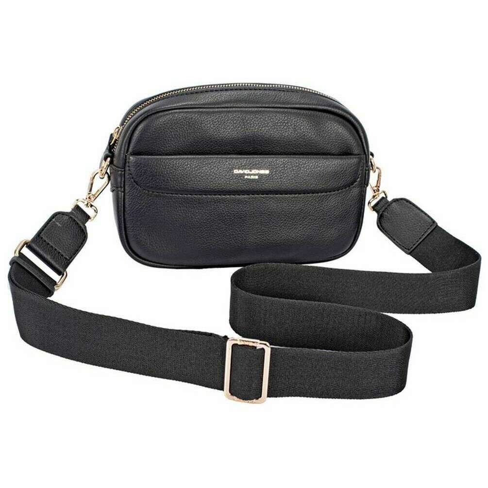 This small camera bag for women is fashioned by the brand David Jones in a black colour and is made from 100% polyurethane. It measures 15cm(height) x 19cm(width) x 4cm(depth). All the bags come complete with david jones packaging. The David Jones Small Camera Bag - Black is a stunning hands-free bag to ensure comfort and practicality. The front mag dot pocket, internal zipper pocket and 3 credit card pockets allows extra storage to ensure all your essential items are organised with you on the go. Completing this stunning design is the signature logo on the front pocket. The detachable adjustable strap allows you to change this bag to your preference depending on the day or occasion.