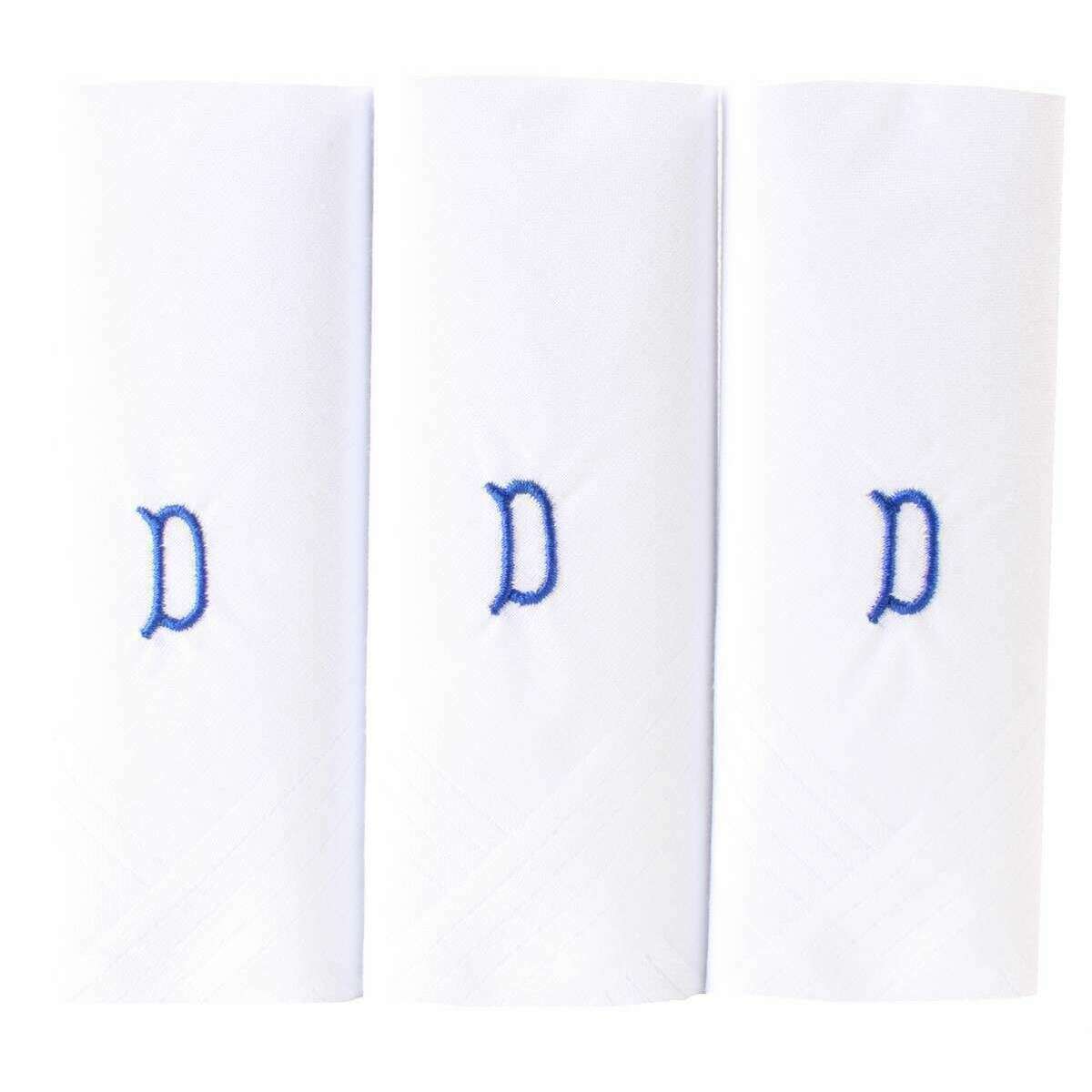 This men's d initial 3 pack handkerchief by the brand David Van Hagen is made from 100% pure cotton and is showcased in white. It measures 40cm(height) x 40cm(width). Also the white/blue handkerchief is designed in a plain pattern, It is recommended to machine wash at 40 degrees and do not tumble dry or dry clean to keep this handkerchief in good condition. 3 pack handkerchiefs are value for money ensuring they are a good buy, All the handkerchiefs come complete in a presentation box. The David Van Hagen D Initial 3 Pack Handkerchief - White/Blue would make the perfect and meaningful personalised gift for a special gentleman. These are needed for all occasions and will become a handy accessory and a staple for every day. The embroidered letter on the front adds a simple yet classic look with a touch of personality. Crafted from high-quality pure cotton ensures durability that is also highly absorbent and has a luxurious and soft feel.