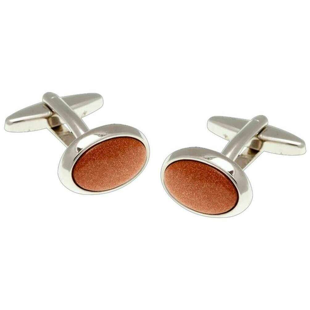 • Cabochon Semi-Precious Brown Goldstone , Polished Edges , Standard Cufflink Bascule