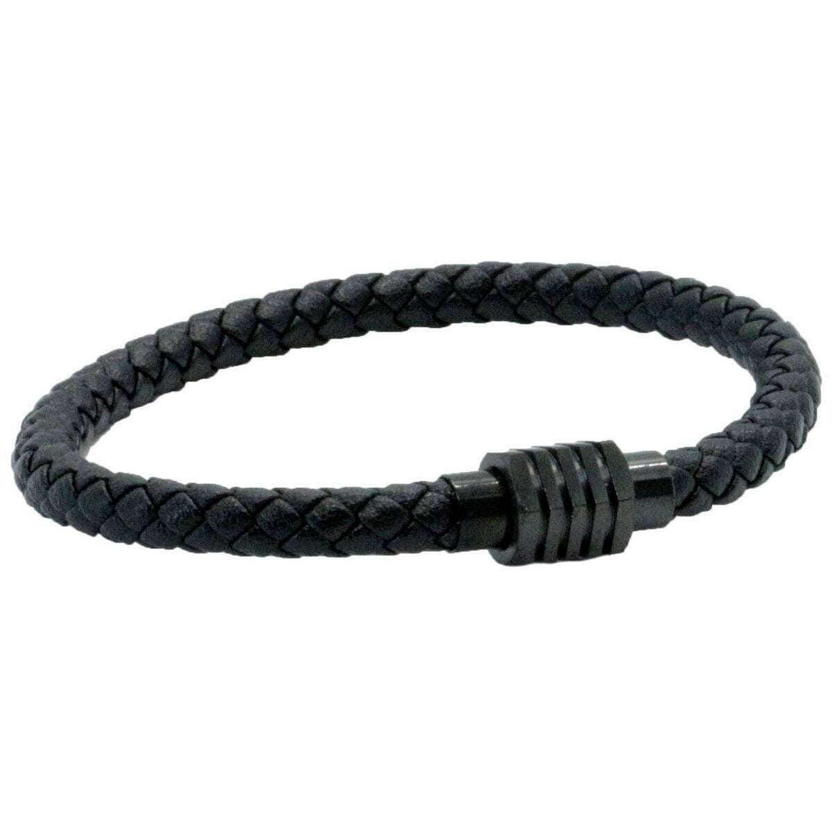 David Van Hagen Ribbed Clasp Leather Bracelet - Black