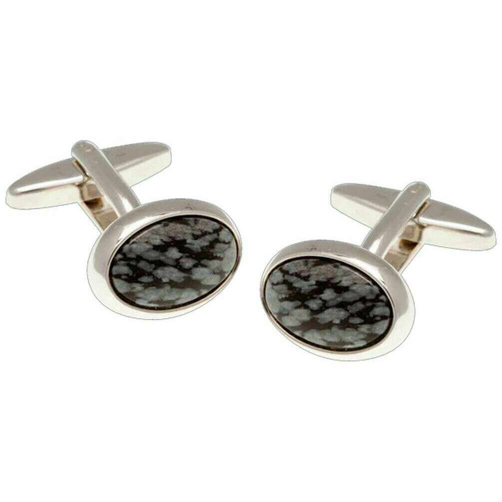 • Cabochon Semi-Precious Snowflake Stone , Polished Edges , Standard Cufflink Bascule