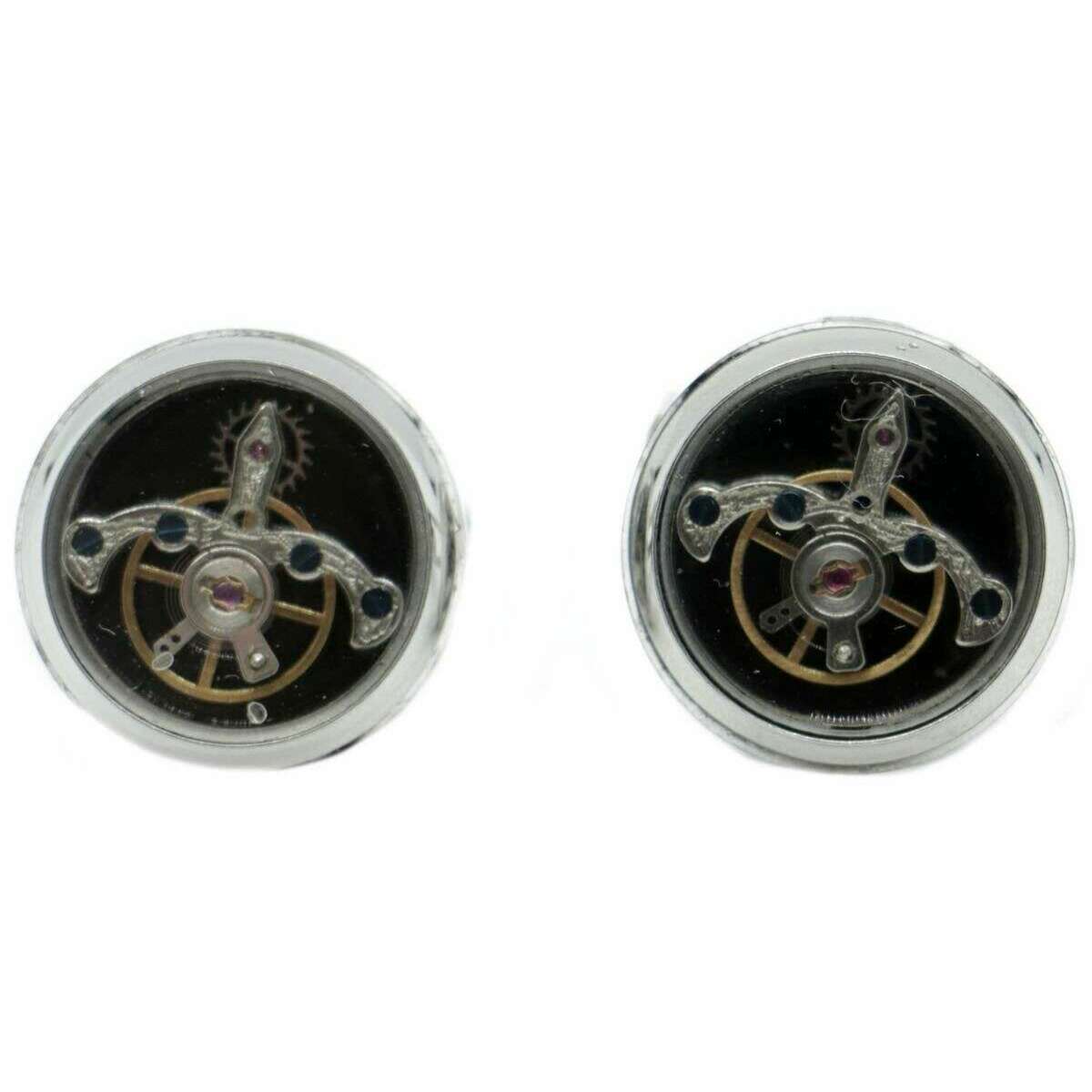 David Van Hagen Tourbillon Cufflinks - Black/Silver