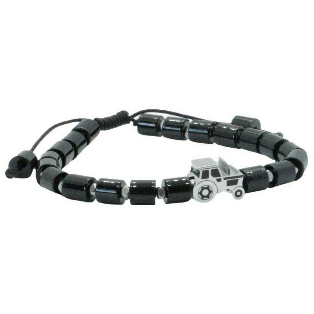 This tractor bead agate bracelet for men is fashioned by the brand David Van Hagen in a black colour and is made from leather and bead. All the bracelets come complete with a david van hagen bag. The David Van Hagen Tractor Bead Agate Bracelet - Black is the ideal bracelet for any gentleman looking to add an extra touch to his attire. The adjustable closure is great for all sized wrists for a customised fit whether that is loose or tight depending on preference. Featuring a tractor centrepiece adds a personalised touch and a subtle detail.
