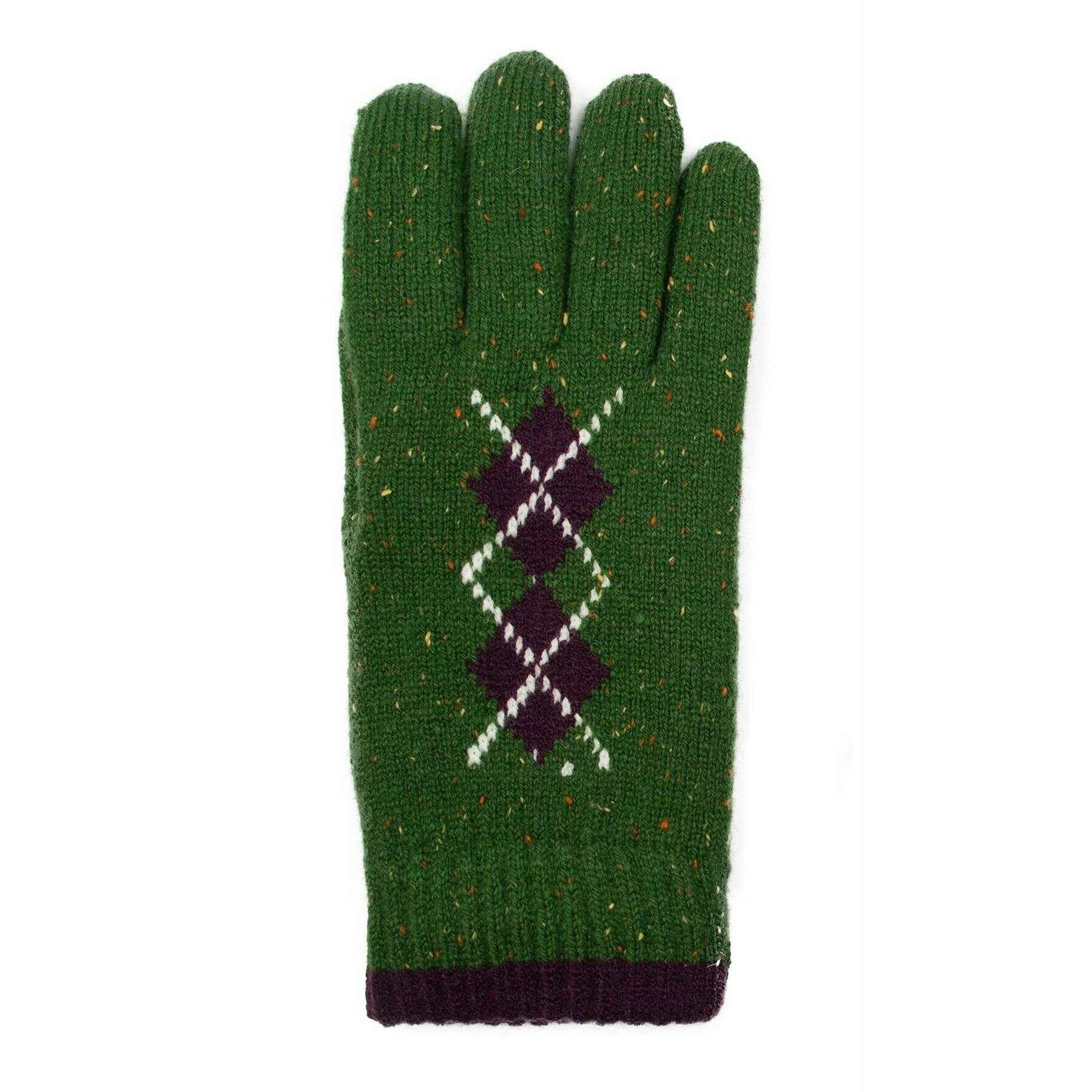 Dents Argyle Marl Yarn Knitted Gloves - Emerald Green/Amethyst Purple