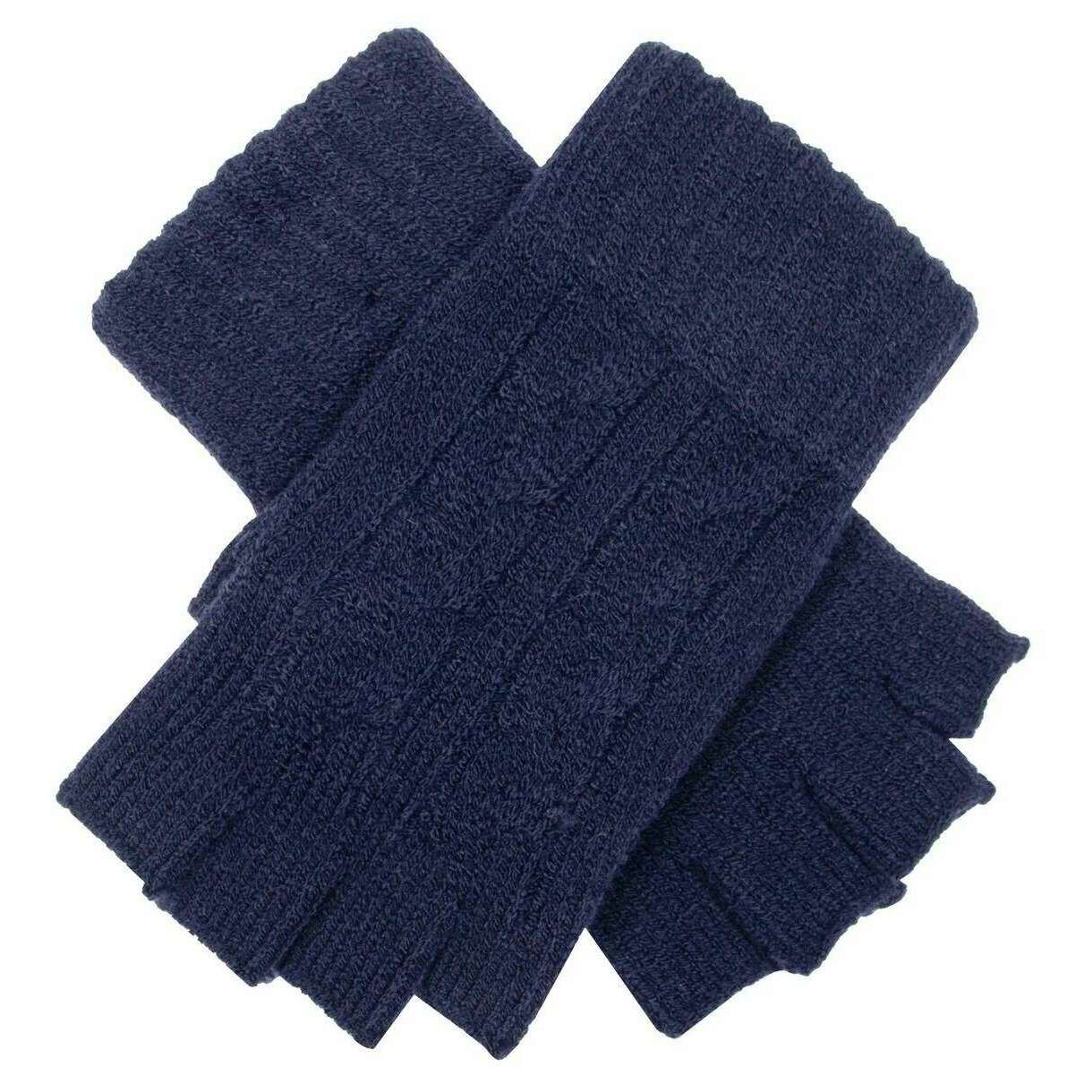 Dents Fingerless Cable Knit Gloves - Navy