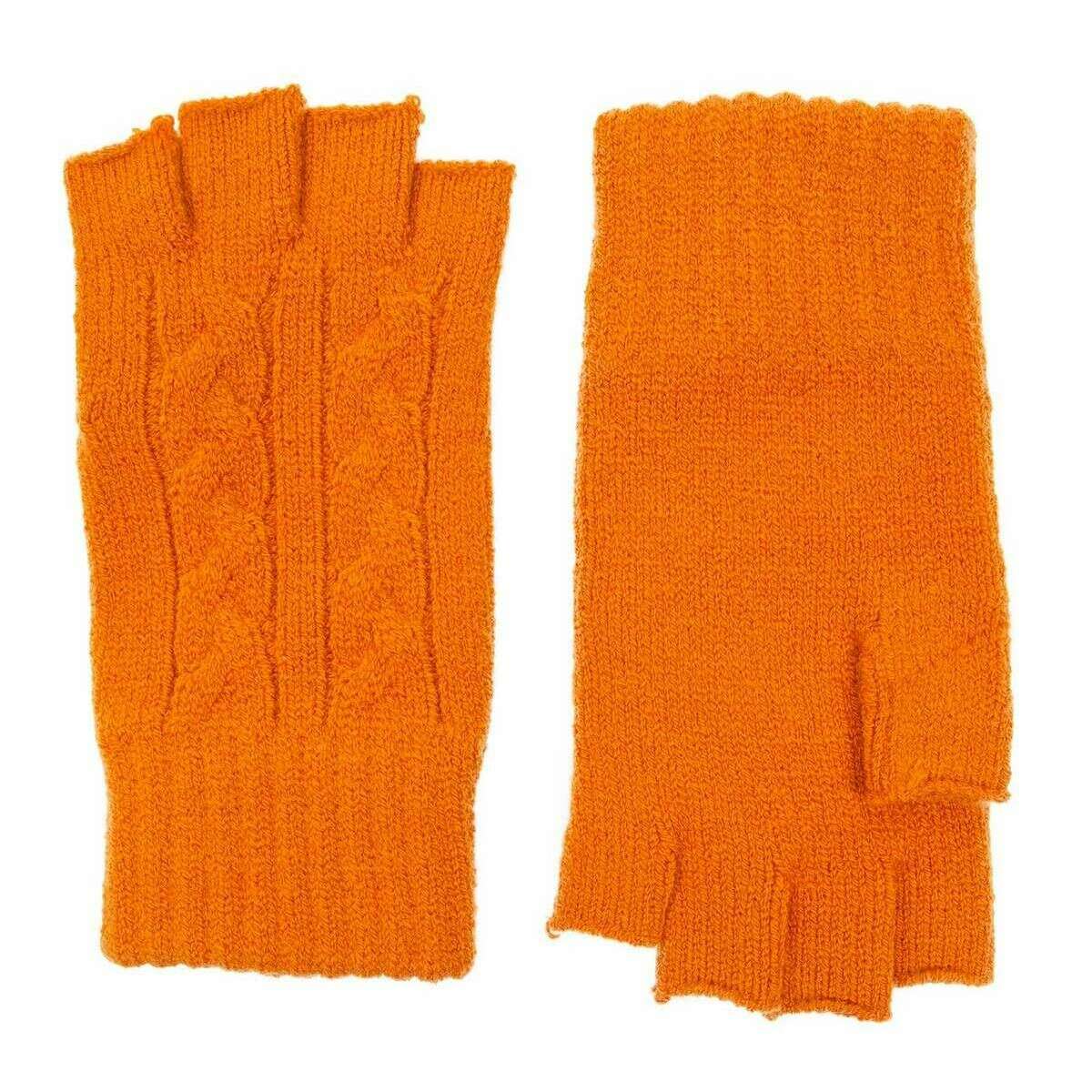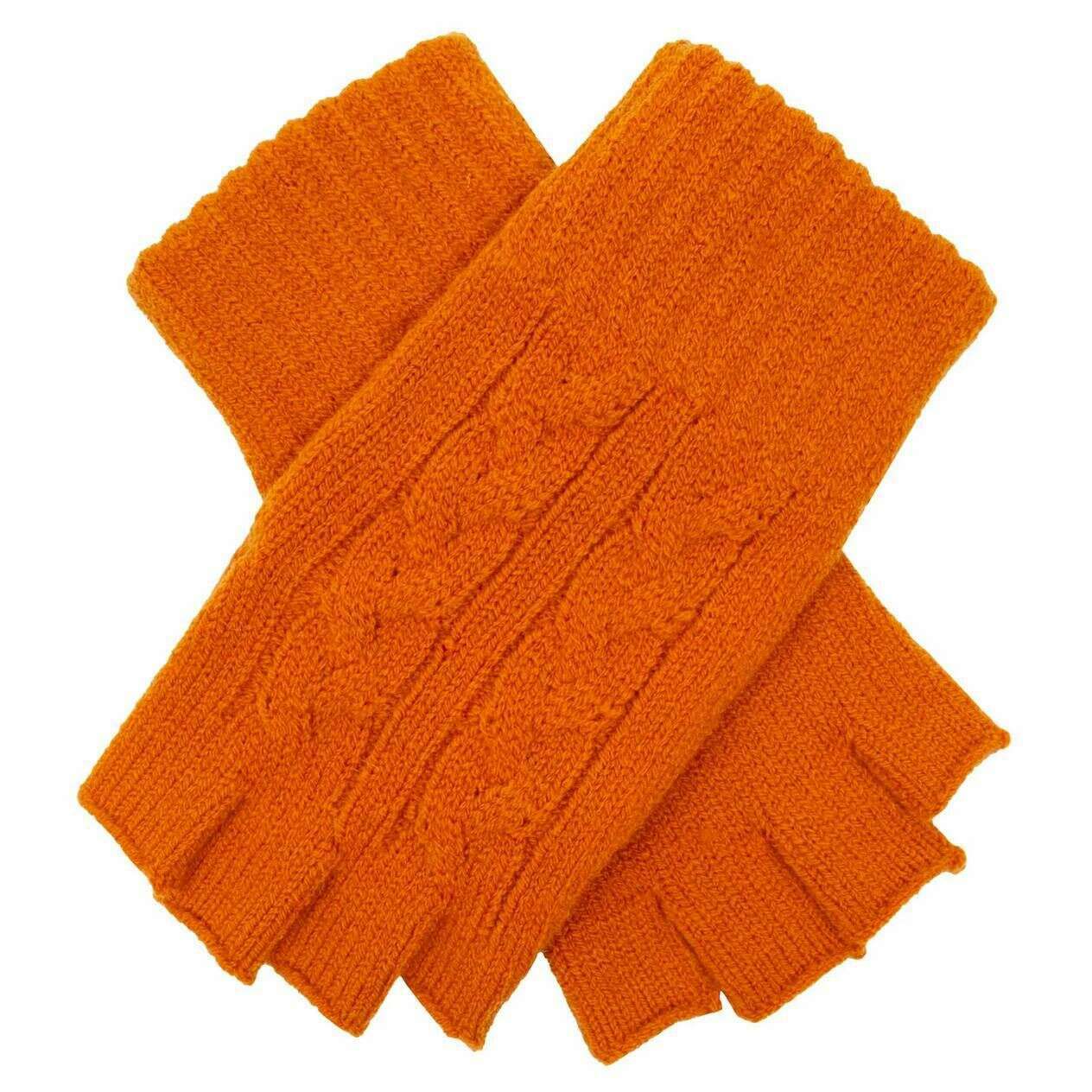 Dents Fingerless Cable Knit Gloves - Pumpkin Orange
