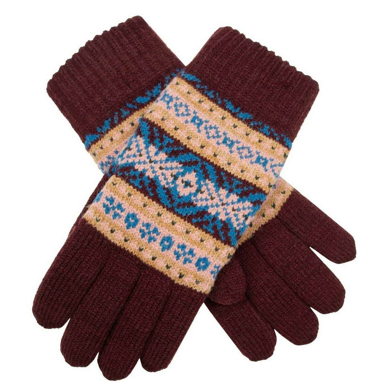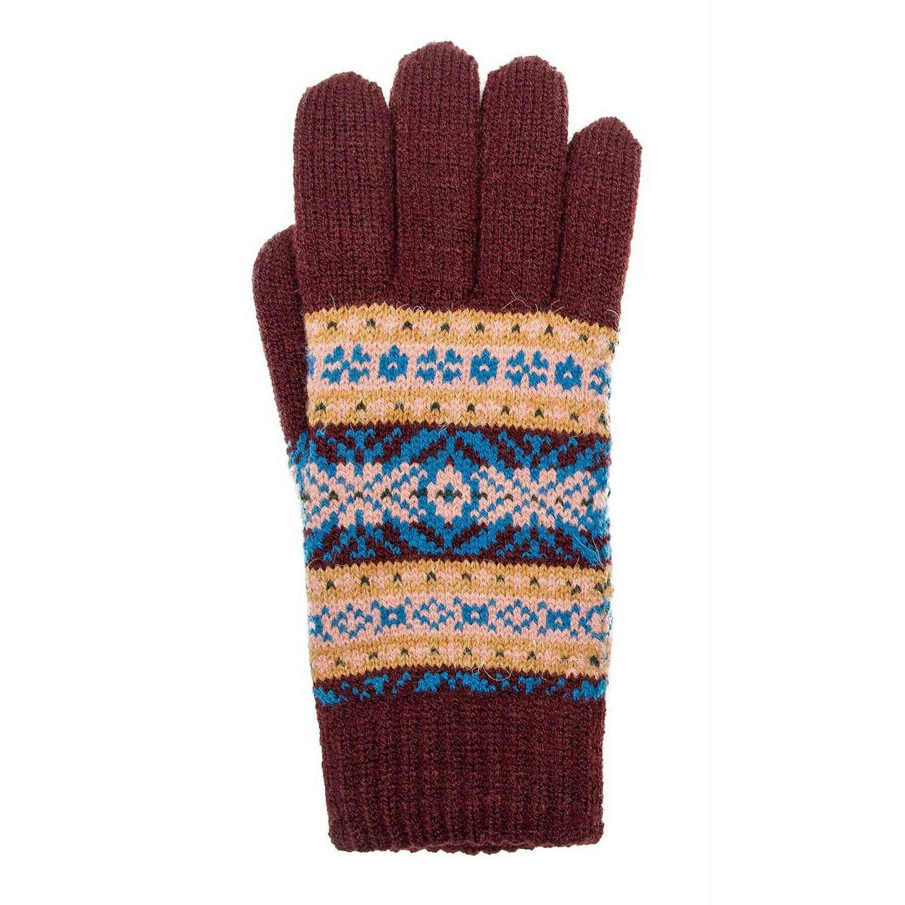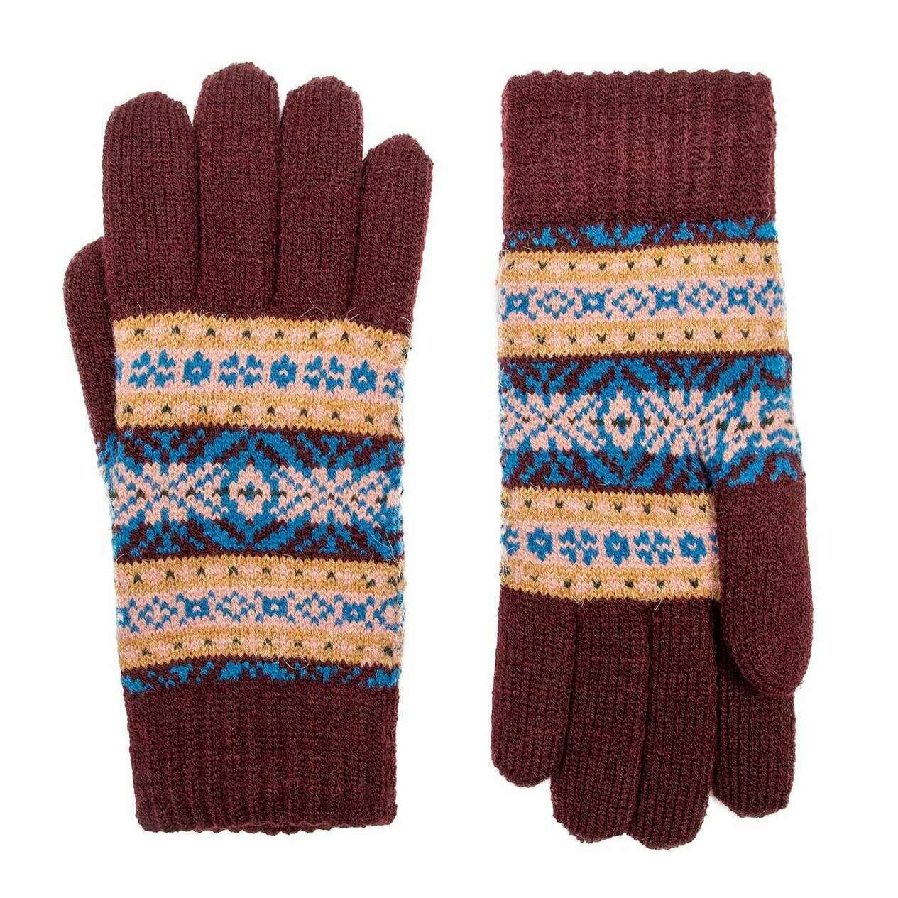 Dents Jacquard Fair Isle Knitted Gloves - Damson Burgundy
