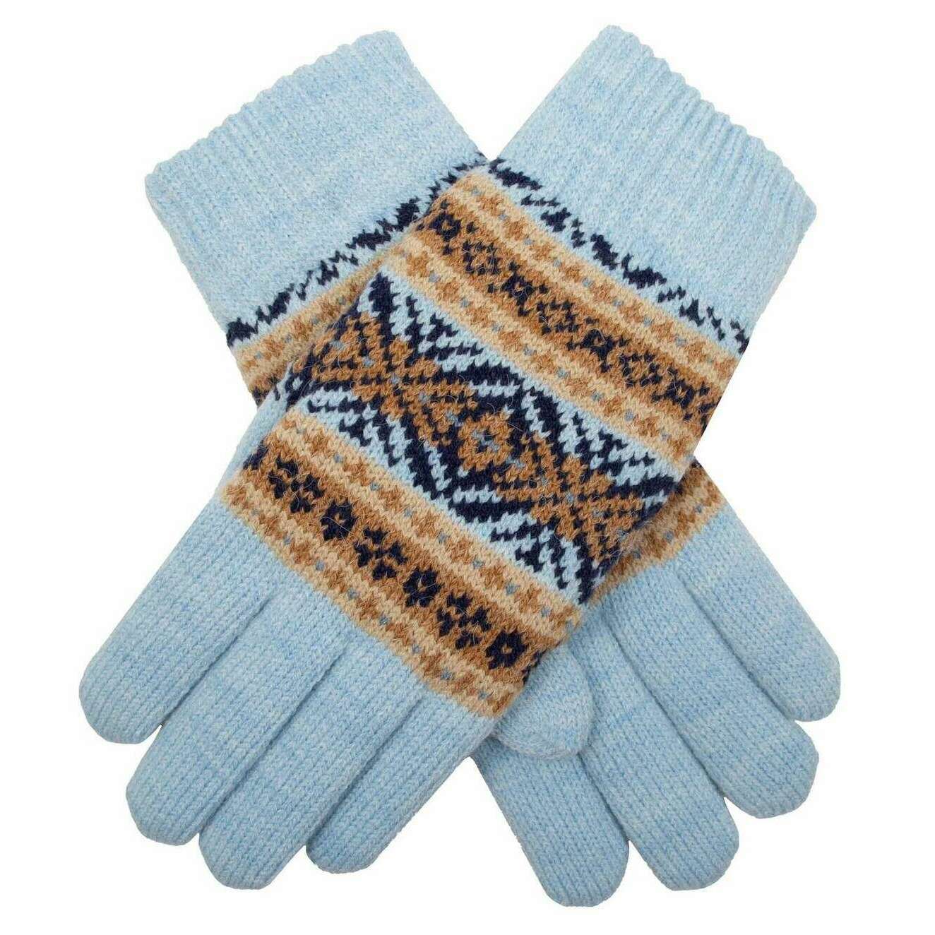 Dents Jacquard Fair Isle Knitted Gloves - Pale Blue