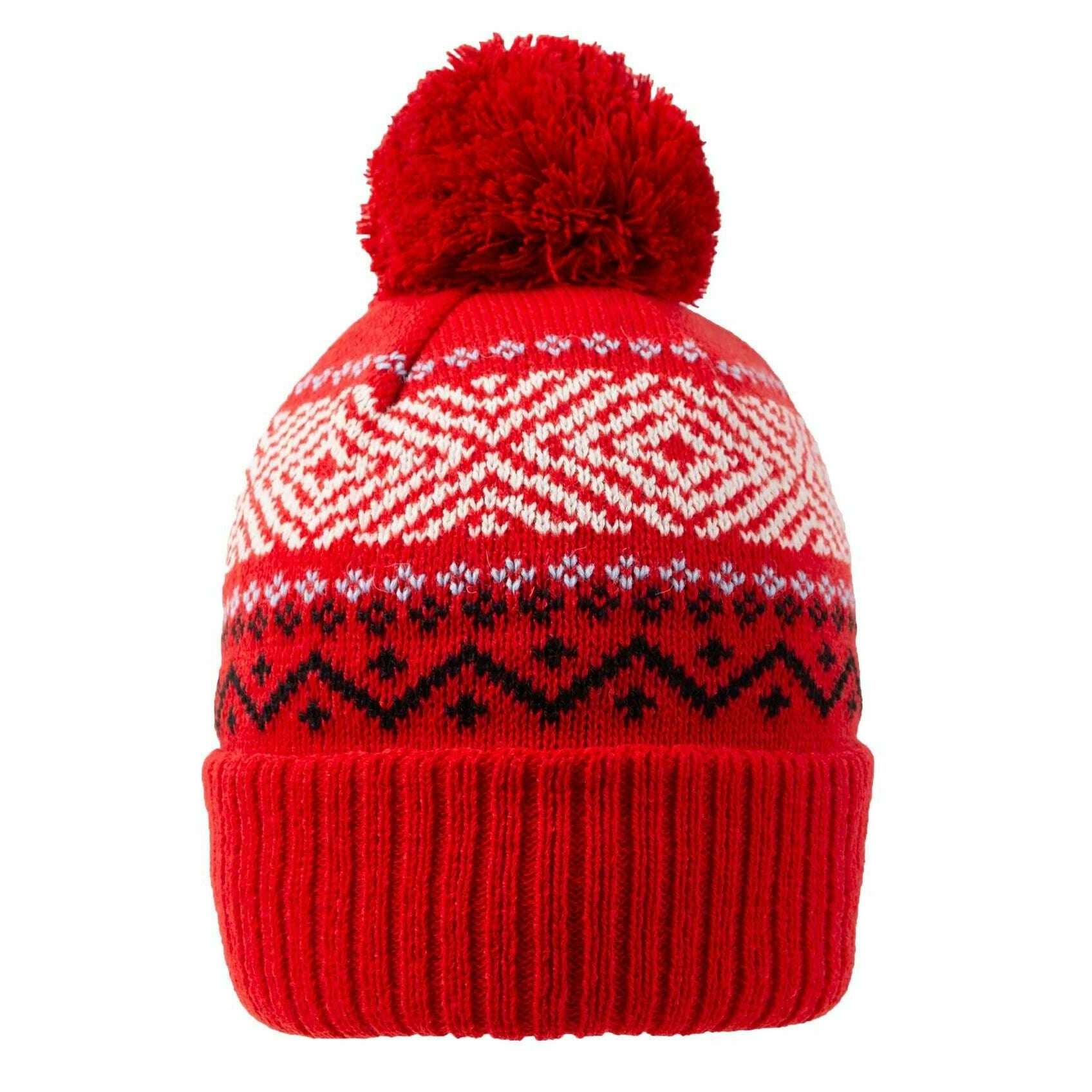 Dents Jacquard Knitted Bobble Hat - Berry Red