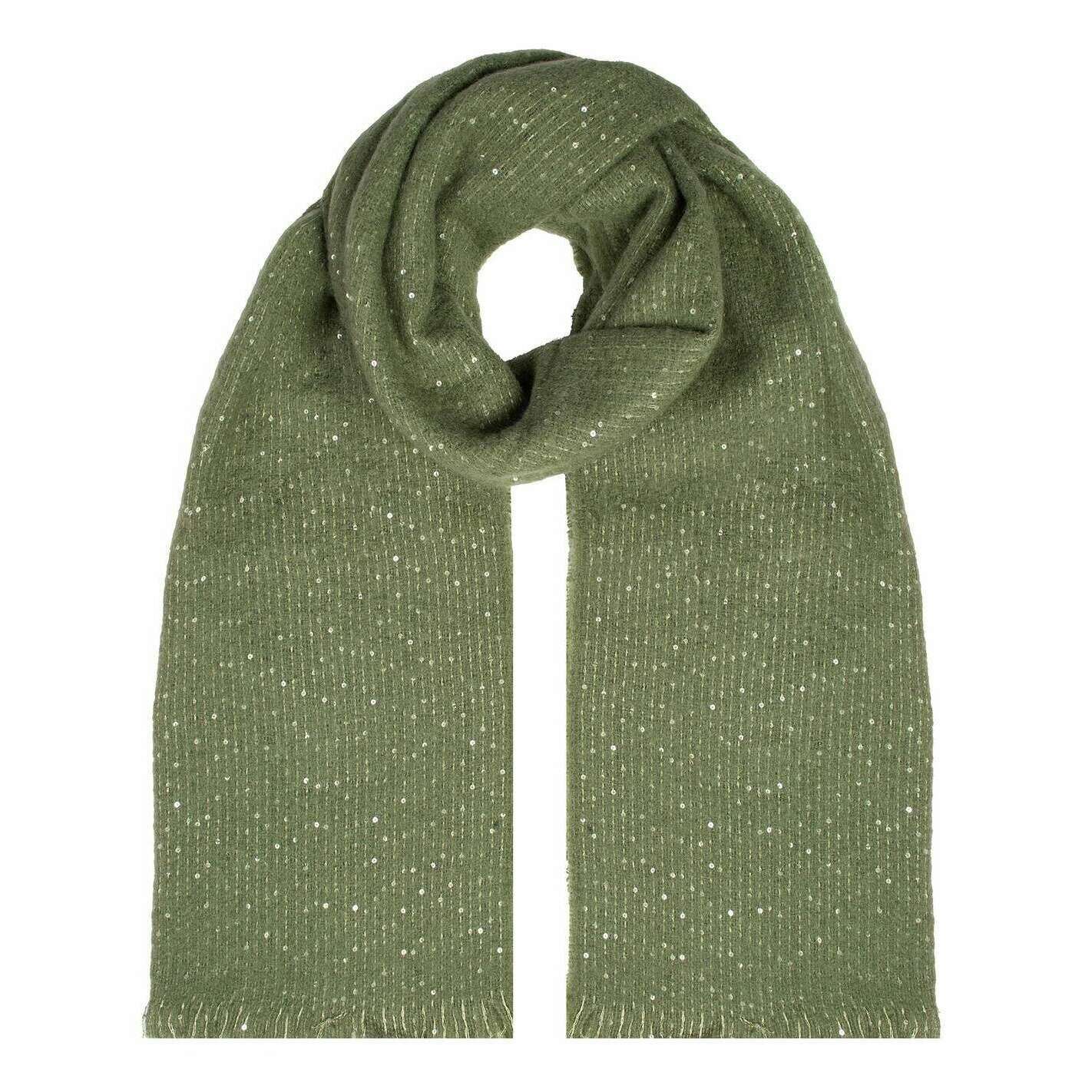 This women's sequin scarf has been made from 100% polyester, featured in a green colour and is from the brand Dents. It measures 180cm(height) x 50cm(width). Also the olive green scarf is designed in a plain pattern, It is recommended to hand wash only to keep this scarf in good condition. All the scarves come complete with dents tags. The Dents Sequin Scarf - Olive Green features a fun sequin green design. This scarf is cute and bold, perfect for cold weather and adding a bit of sparkle to an everyday look. Also includes classic tassels for an added unique touch.