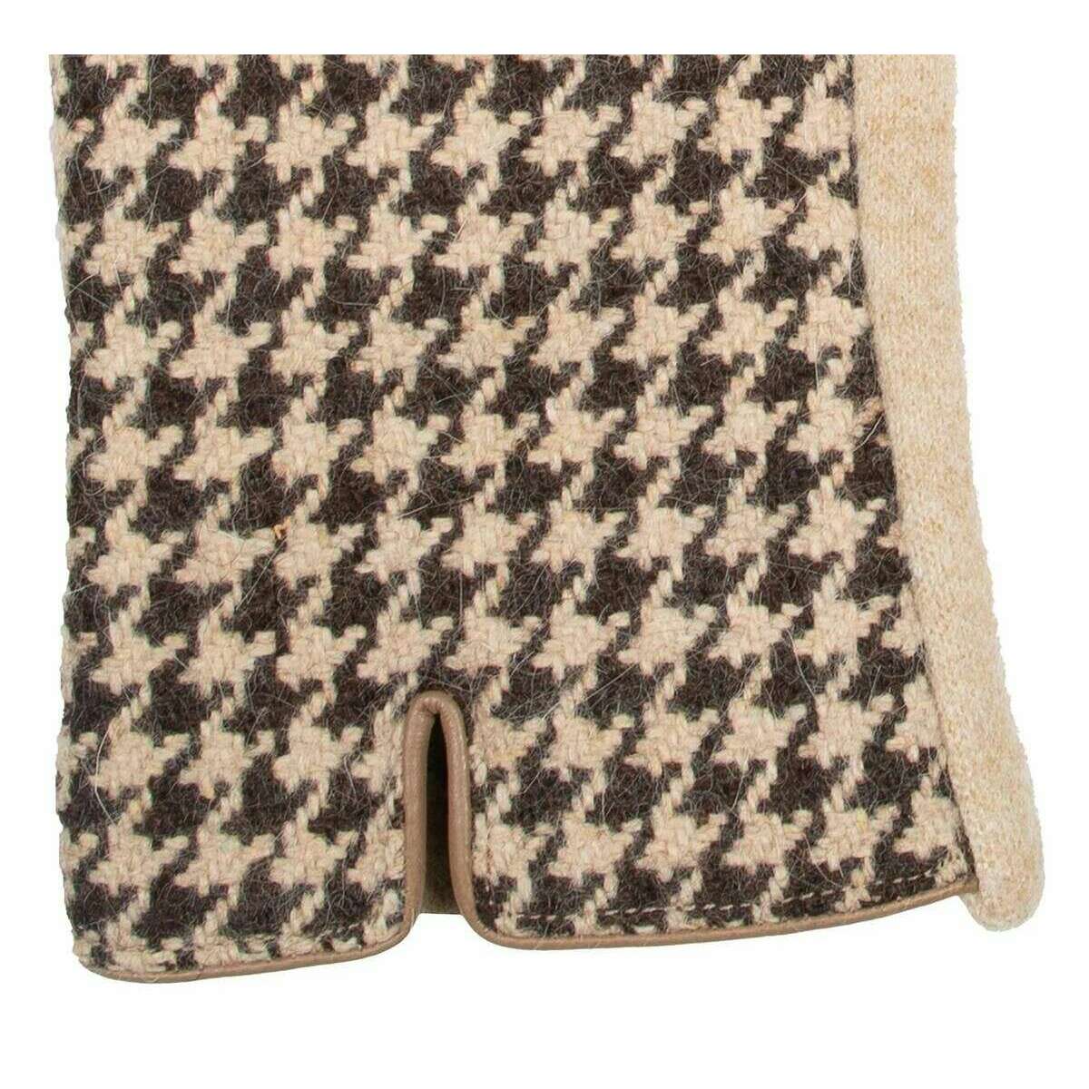 Manufactured from 90% polyester and 10% spandex are these natural women's touchscreen dogtooth design gloves by the designer Dents. Also the natural gloves are designed in a houndstooth pattern, It is recommended to hand wash only to keep these gloves in good condition. All the gloves come complete with dents tags. The Dents Touchscreen Dogtooth Design Gloves - Natural are an iconic dogtooth glove to have in your wardrobe this winter. Suitable for any occasion and activity due to the heart-shaped touchpads on the index finger and thumb, which allow you to use any device without having to remove your gloves. These detailed and high-quality tanned gloves are perfect for your autumn and winter days.