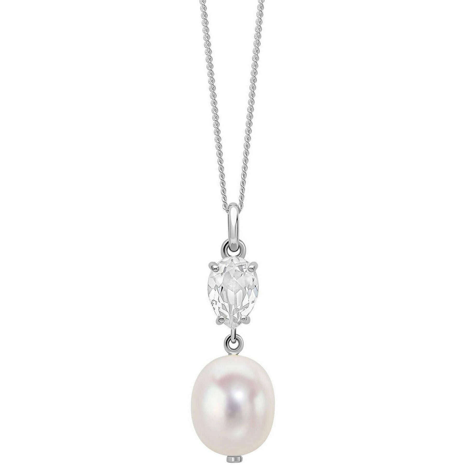 Perfect for women is this Elements Gold silver/white baroque pearl and topaz 9ct gold pendant, it is also made from rhodium plated 9ct white gold freshwater pearl and topaz. It measures 41-46cm(chain length). All the pendants come complete in an elements gold gift box. The Elements Gold Baroque Pearl and Topaz 9ct Gold Pendant - Silver/White is a beautiful everyday wear that combines both timeless elegance and contemporary style. Subtly intertwined into the design are stunning Freshwater pearls which brings classic flair to the design making it an essential, feminine piece for your collection. It will also make the perfect gift for that someone special to cherish for a lifetime.