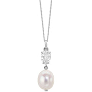 • Rhodium Plated 9ct White Gold Freshwater Pearl and Topaz