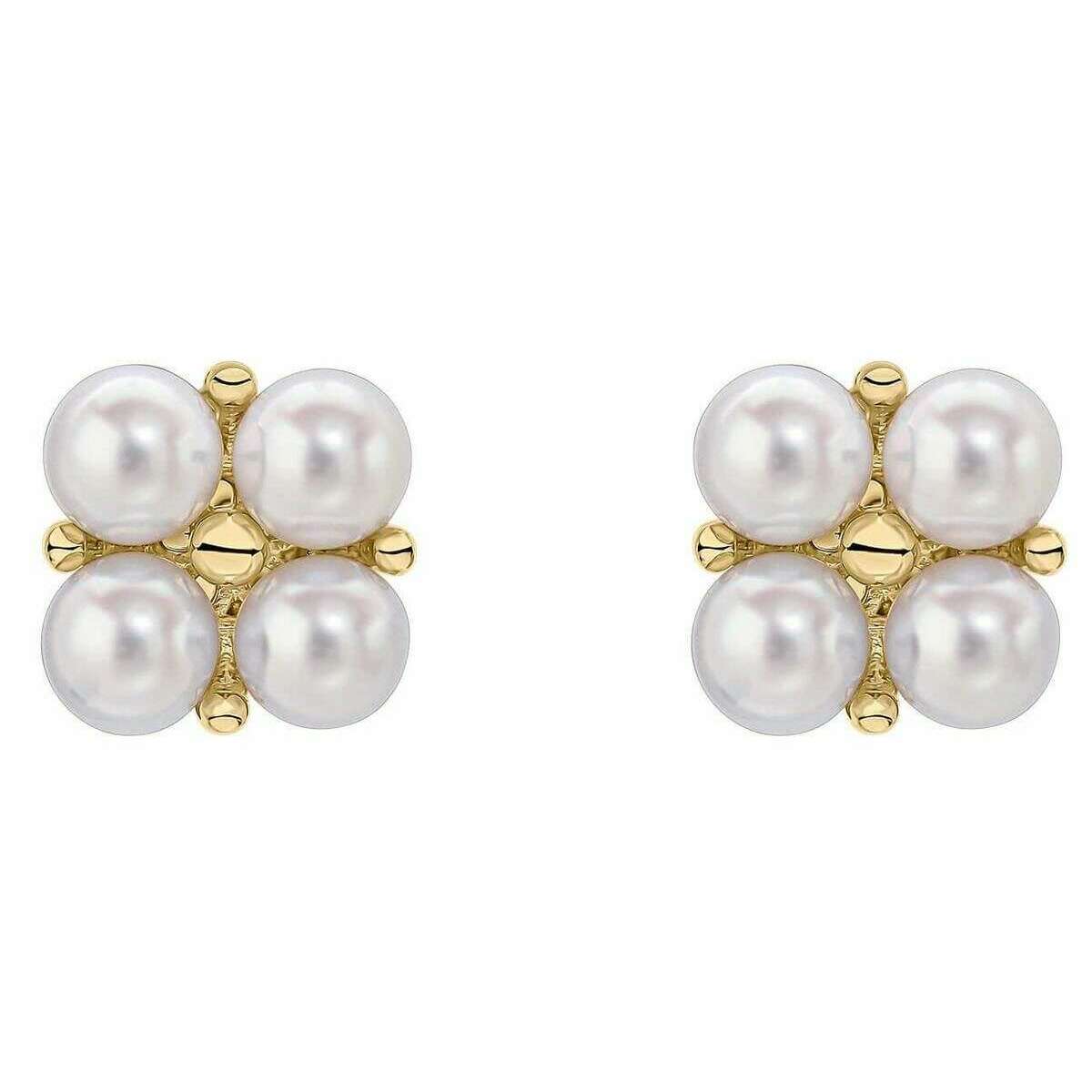 Elements Gold Floral Freshwater Pearl 9ct Gold Earrings - Gold/White