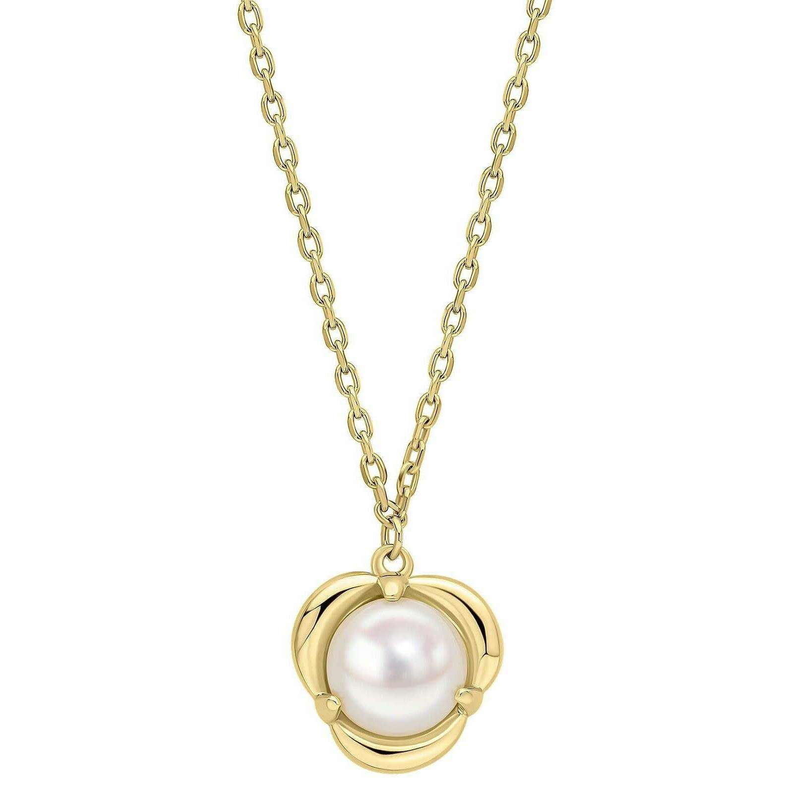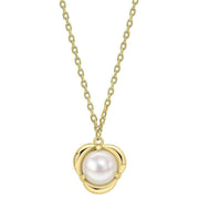 Elements Gold Petal Set Pearl 9ct Gold Necklace - Gold/White