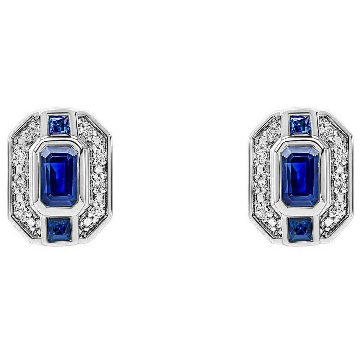 Elements Gold Sapphire Channel and Diamond Earrings - Blue