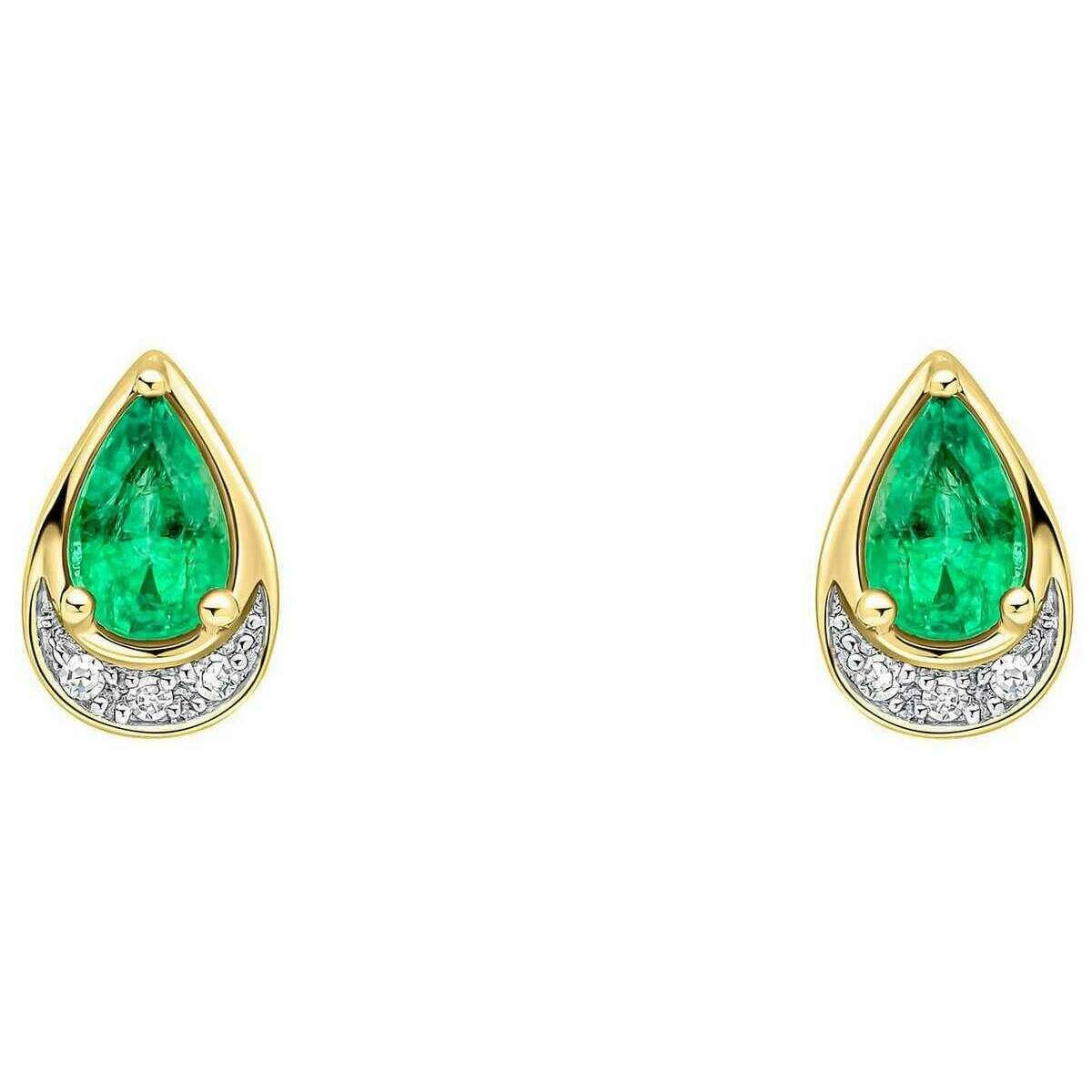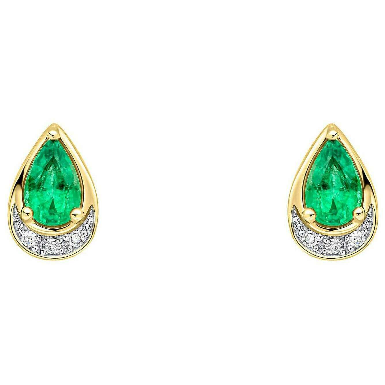 Elements Gold Teardrop Emerald and Diamond 9ct Gold Earrings - Green