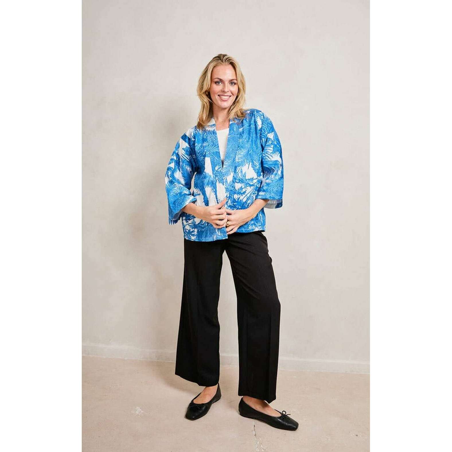 Designer Elie Beaumont has brought you this women's 100% natural cotton jacket using blue palm tones. All the jackets come complete with elie beaumont packaging. The Elie Beaumont Serendipity Short Kimono - Blue Palm will provide you with a real standout look that you are sure to love! The bold colours and the intricate design makes this kimono jacket really standout. This kimono is fully lined, breathable and has length sleeves.