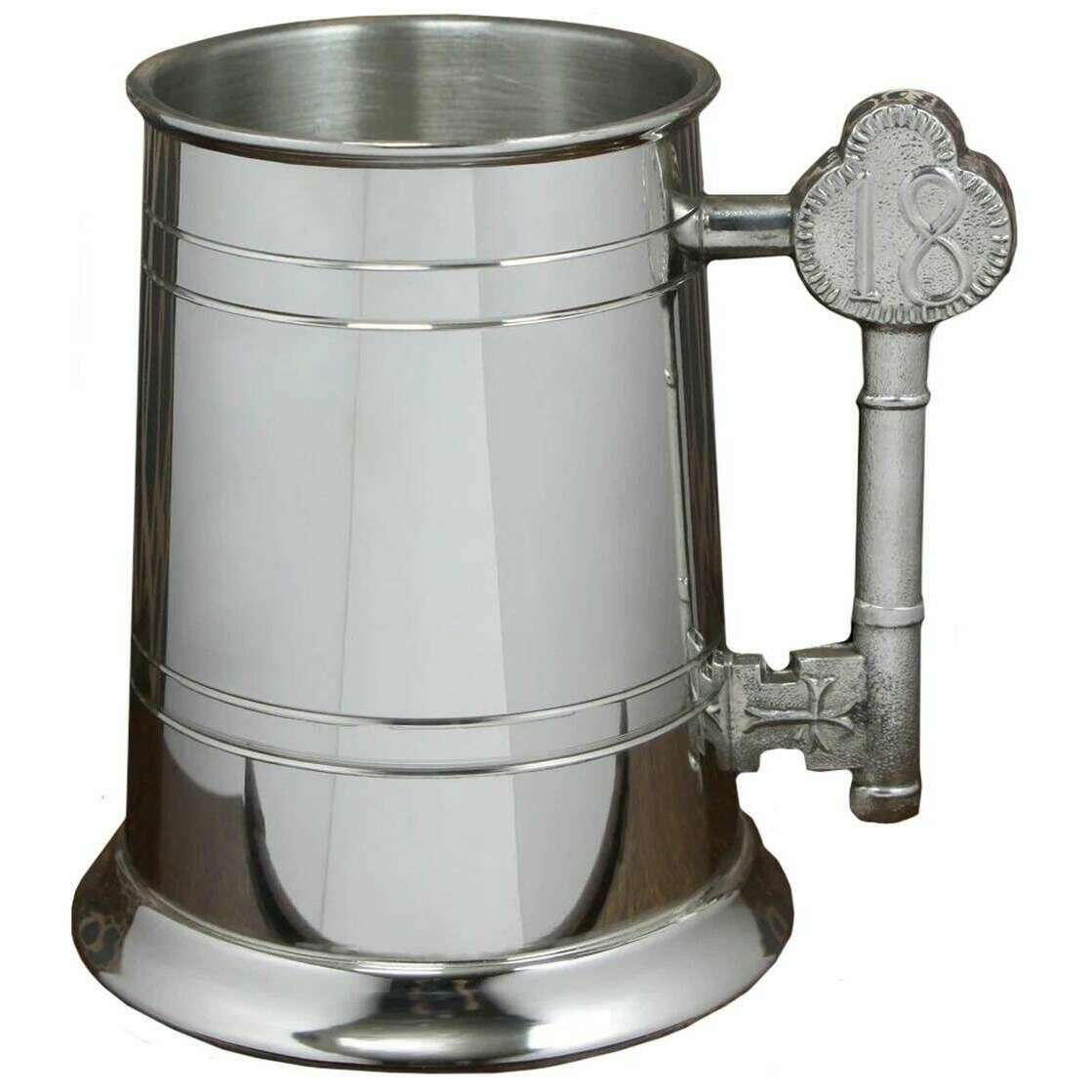 Using silver pewter, this 1pt 18 key handle tankard by English Pewter Company is perfect for men or women and a must have. It measures 12.75cm(height). All the drinkware and glassware comes complete in a english pewter company gift box. The English Pewter Company 1pt 18 Key Handle Tankard - Silver will make the perfect gift for someone special or to add to your drinkware. It features a sturdy handle with an intricate design and offer classic appeal with its weighty finish. Fill it up with your favourite ale or craft beer and raise a toast for the special occasion. The high quality material ensures it gives off timeless charm.