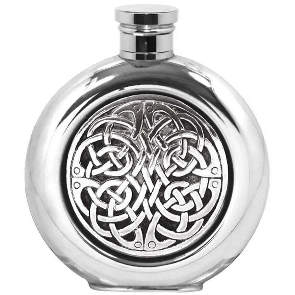 English Pewter Company 4oz Round Celtic Disk Flask - Silver