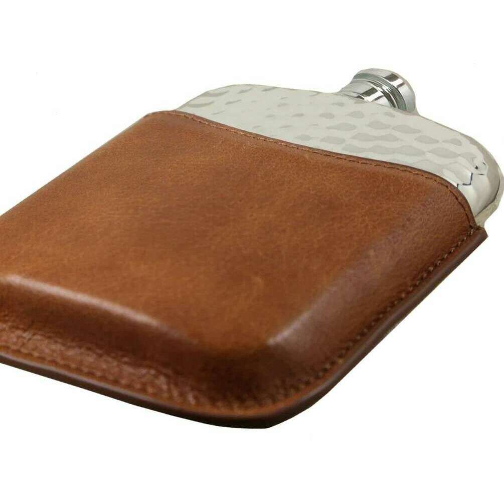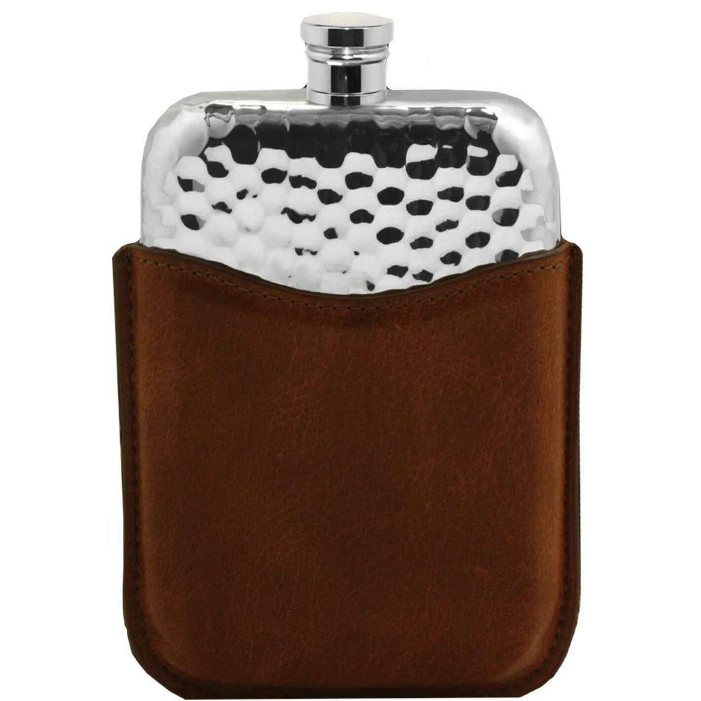 English Pewter Company 6oz Hammered Purse Flask and Pouch - Silver/Brown