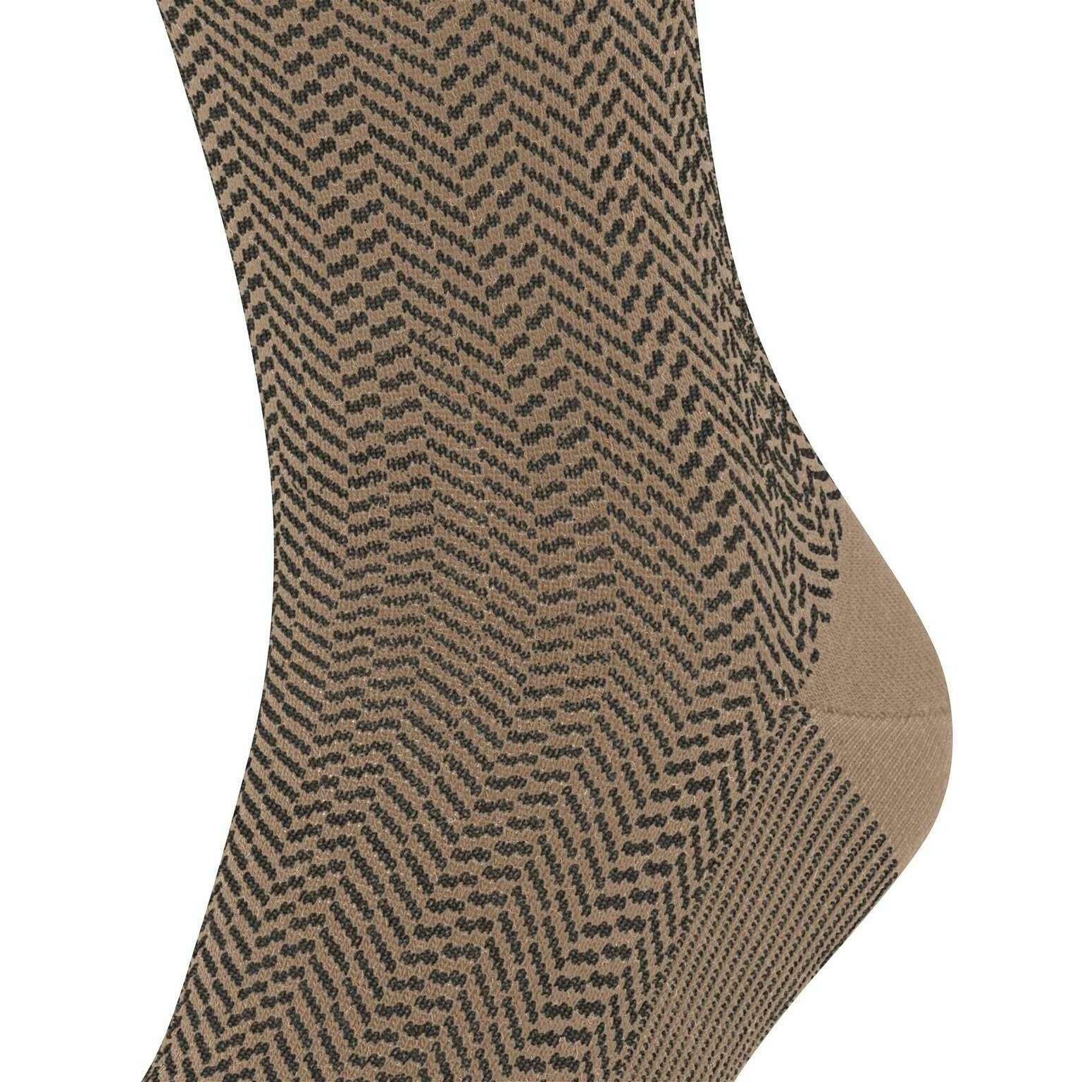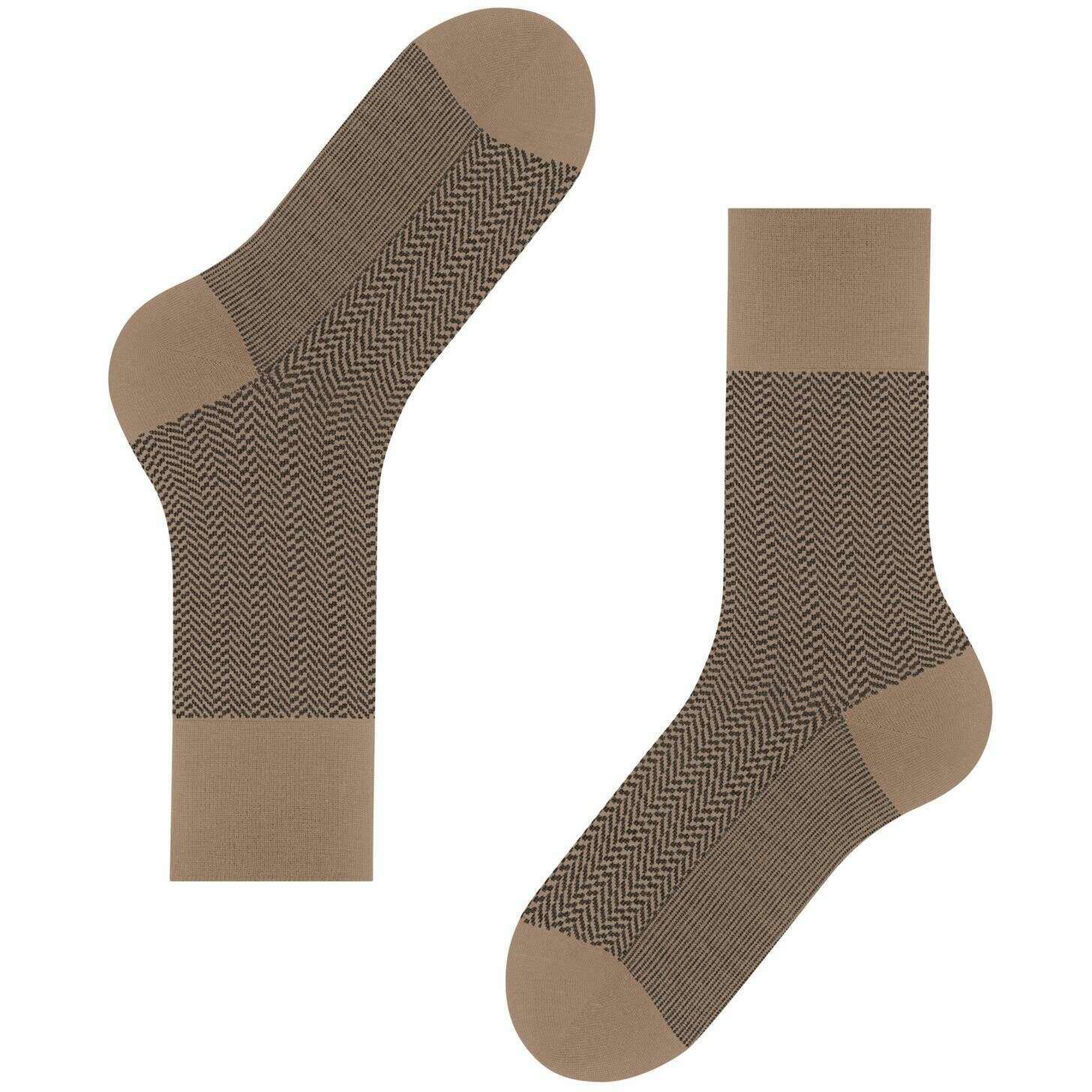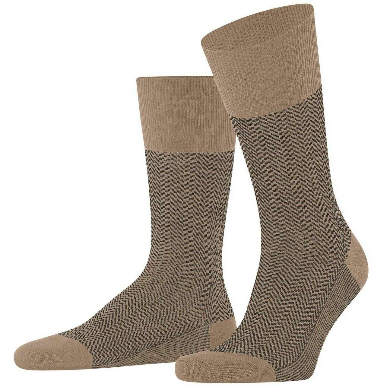 These airport herringstripe socks for men are fashioned by the brand Falke in a brown colour and are made from 62% virgin wool, 24% polyamide, 13% cotton and 1% elastane. Also the camel brown socks are designed in a herringbone pattern, It is recommended to wash at 30 degrees to keep these socks in good condition. All the socks come complete with falke tags. The Falke Airport Herringstripe Socks - Camel Brown are woven with the correct combination of light, climate-regulating merino wool on the outside and pleasant soft cotton on the inside. For work or leisure, these socks have extended cuffs for a wrinkle fit on the leg. The reinterpreted, two-tone herringbone pattern adds a modern and stylish touch and lends a special flair to any outfit. Stay comfortable all day with the Falke Perfect fit and enjoy wearing these socks over and over with optimal durability thanks to reinforced stress zones.