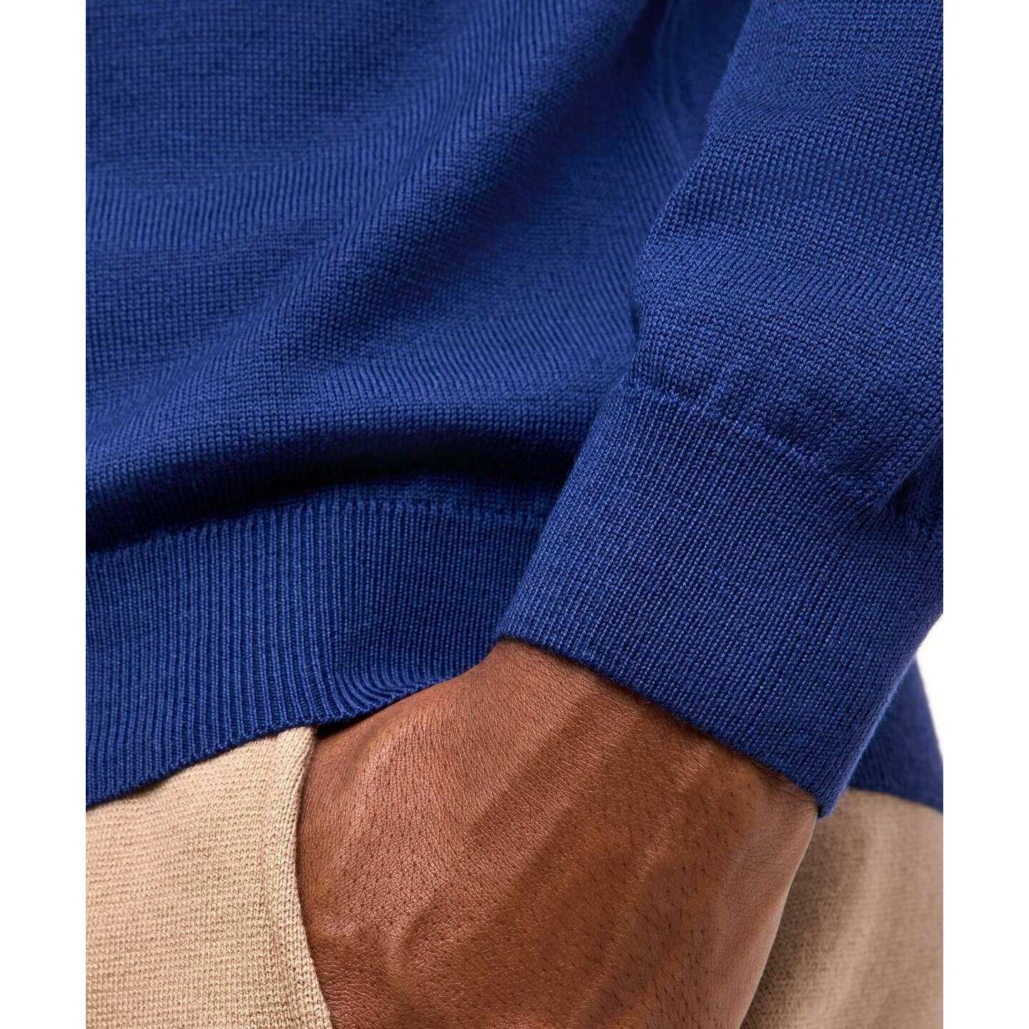 Designer Falke has brought you this men's 100% virgin wool jumper using night blue tones. Also the night blue jumper is designed in a plain pattern, It is recommended to machine wash at 30 degrees to keep this jumper in good condition. All the jumpers come complete with falke packaging. The Falke Merino X-Fine Roll Neck Sweater - Night Blue is a must-have piece to elevate your winter wardrobe with the classic design to give that traditional touch. Crafted from mulesing-free merino wool gives a light wear perfect for mild to cold outdoor temperatures keeping you warm in the autumn and winter. Giving this sweater its fashionable look is the French shoulder seams, fine ribbed neckline and elasticated ribbed cuffs on the trunk and sleeves. The high-quality 'fully fashioned' processing gives an exclusive feel that will be enjoyed and will stay this way for many years to come.