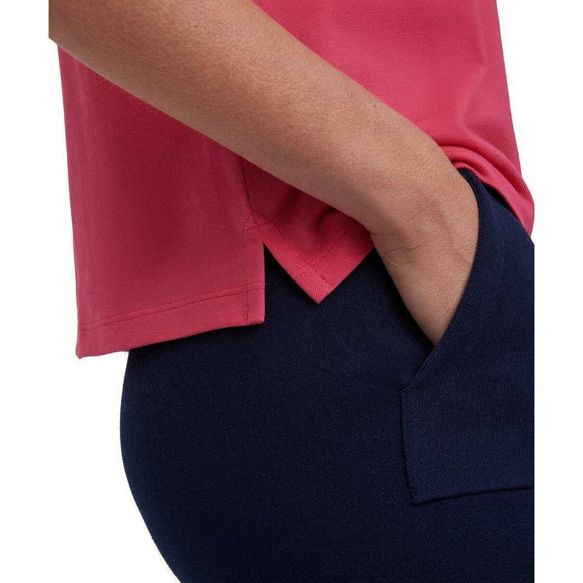 Brought to you by the brand Falke, this fuchsia pink women's pima pique boxy polo shirt is made from 100% cotton. Also the fuchsia pink polo shirt is designed in a plain pattern, It is recommended to machine wash at 30 degrees to keep this polo shirt in good condition. All the polo shirts come complete with falke packaging. The Falke Pima Pique Boxy Polo Shirt - Fuchsia Pink has been expertly crafted with hand-picked Pima cotton that is not only extremely soft and high-quality but also environmentally friendly. The small details give this shirt its gorgeous design which includes the ribbed polo collar, the modern boxy cut, the 3-button closure, the side slit, the piqu texture and the bright colour that is also long lasting.