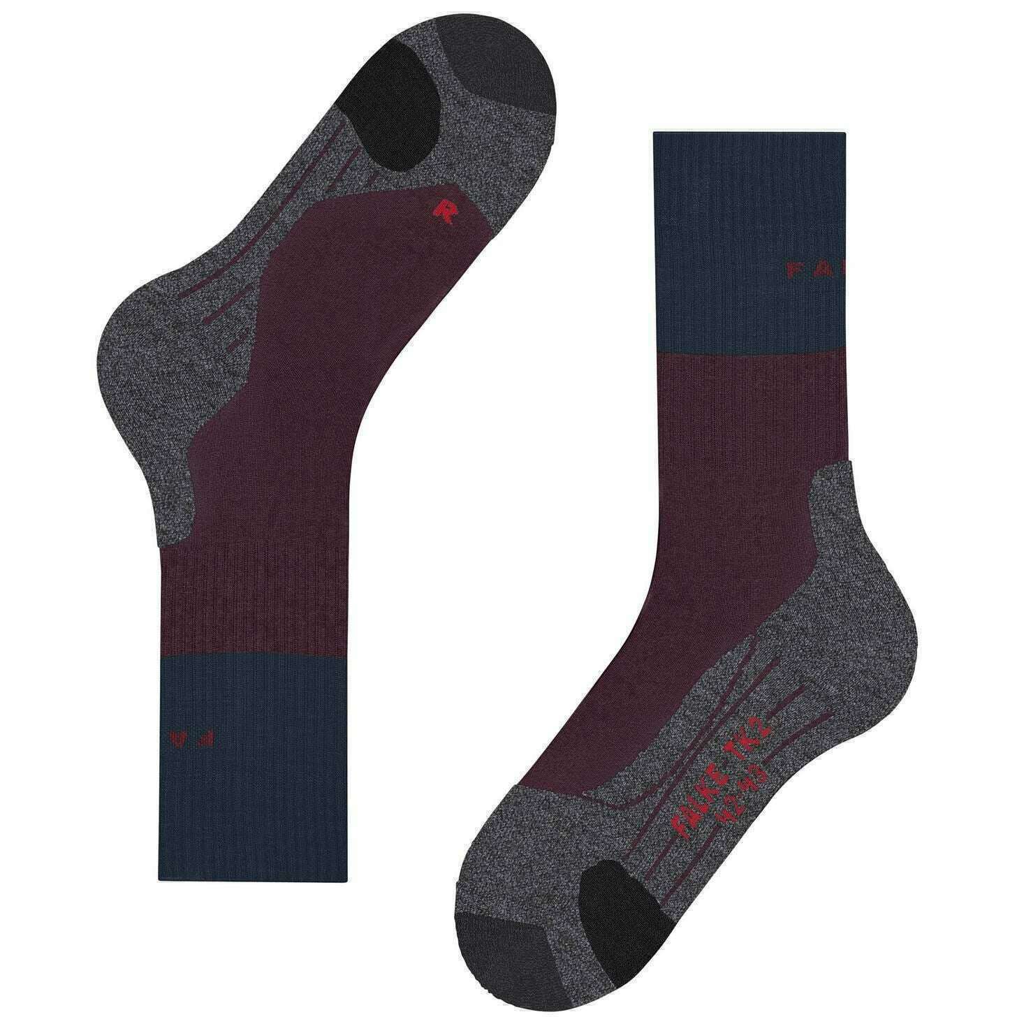 Introducing these men's tk2 explore trekking socks by Falke, they are manufactured from 40% polypropylene, 28% acrylic, 22% wool, 9% polyamide and 1% elastane in a burgundy colour. Also the burgundy socks are designed in a block pattern, It is recommended to wash at 30 degrees to keep these socks in good condition. All the socks come complete with falke socks tags. The Falke TK2 Explore Trekking Socks - Burgundy feature a thermoregulating Merino wool mix with odour resistant qualities that allow you to wear for longer fun in the outdoors. With the mountain Silhouette incorporated into the shaft, these socks give an attractive look. Providing compression zones to increase stability and reduce the risk of sprains, these TK2 Crest socks are designed with moisture wicking 3-layer construction to keep your feet dry and blister free. Optimal fit with toe and sole area adapted to each foot.