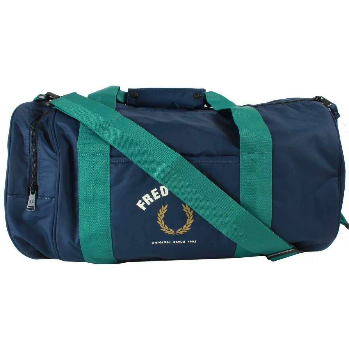Fred Perry Sport Nylon Large Barrel Bag - Tennis Blue/Green