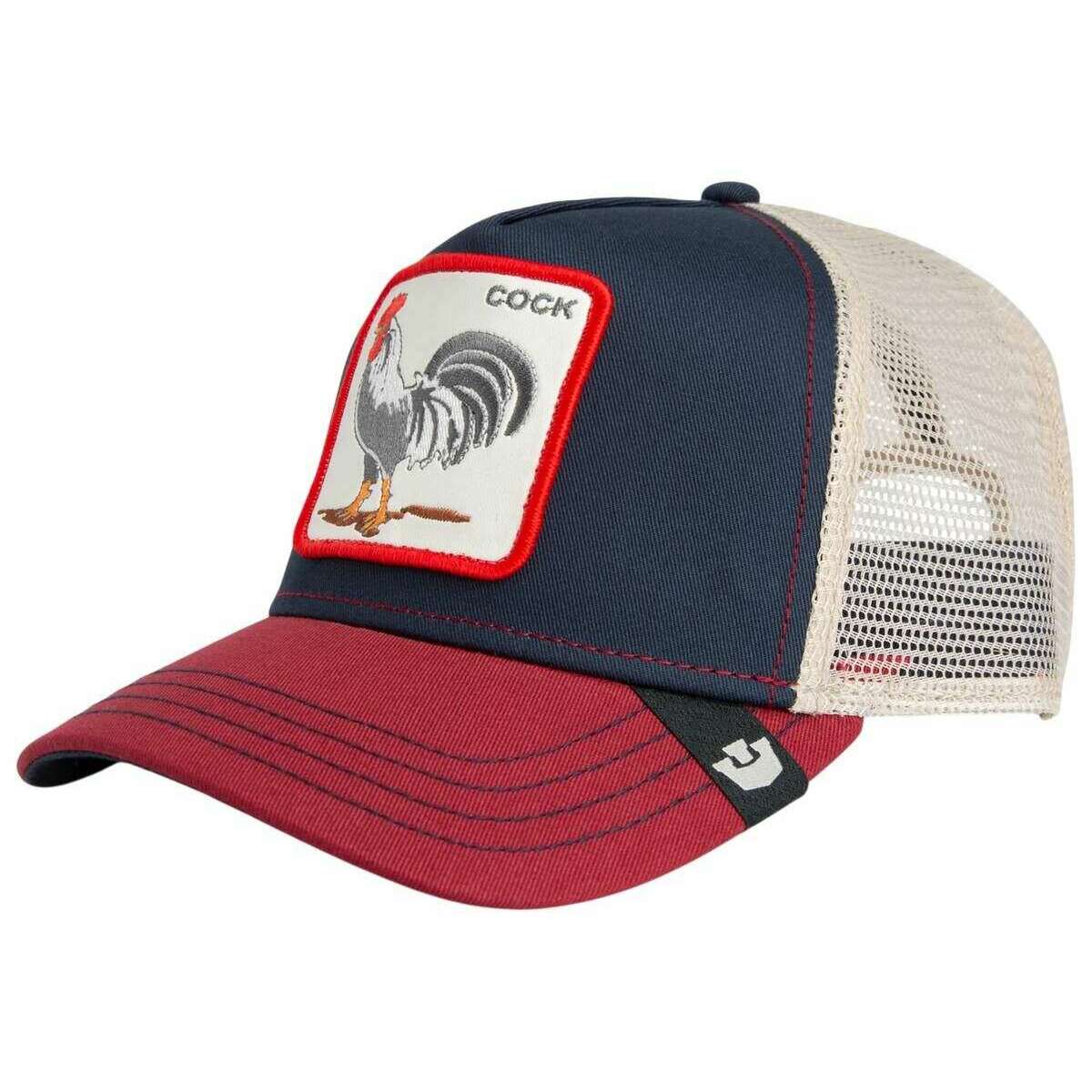 Perfect for men or women is this Goorin Bros edge navy/crush red rooster trucker hat, it is also made from 57% polyester and 43% cotton. All the hats come complete with goorin bros tags. The Goorin Bros Rooster Trucker Hat - Edge Navy/Crush Red is made for those who don t hide. Featuring a striking white rooster patch, this cap sends a clear message: the wearer sets the tone loud, proud, and unapologetically themselves. The dynamic colour combination of a navy front panel, a rich burgundy visor, and beige mesh backing gives the cap a strong street?style presence. The breathable mesh ensures day?long comfort, while the adjustable snapback closure guarantees a perfect fit whether navigating city life or taking charge in everyday moments. A true statement piece, this Goorin Bros cap blends charisma, character, and style perfect for anyone who leads with confidence and isn t afraid to show it.