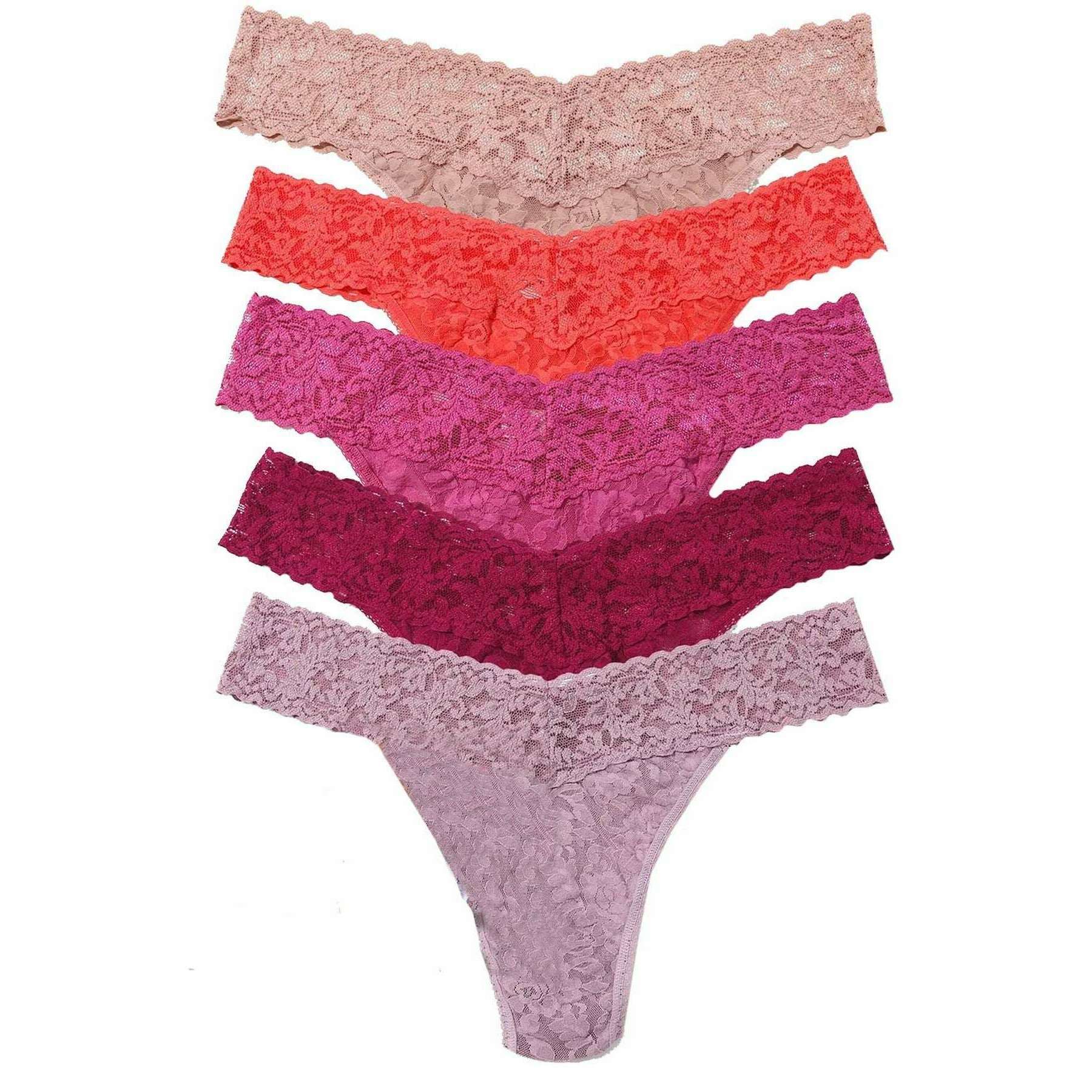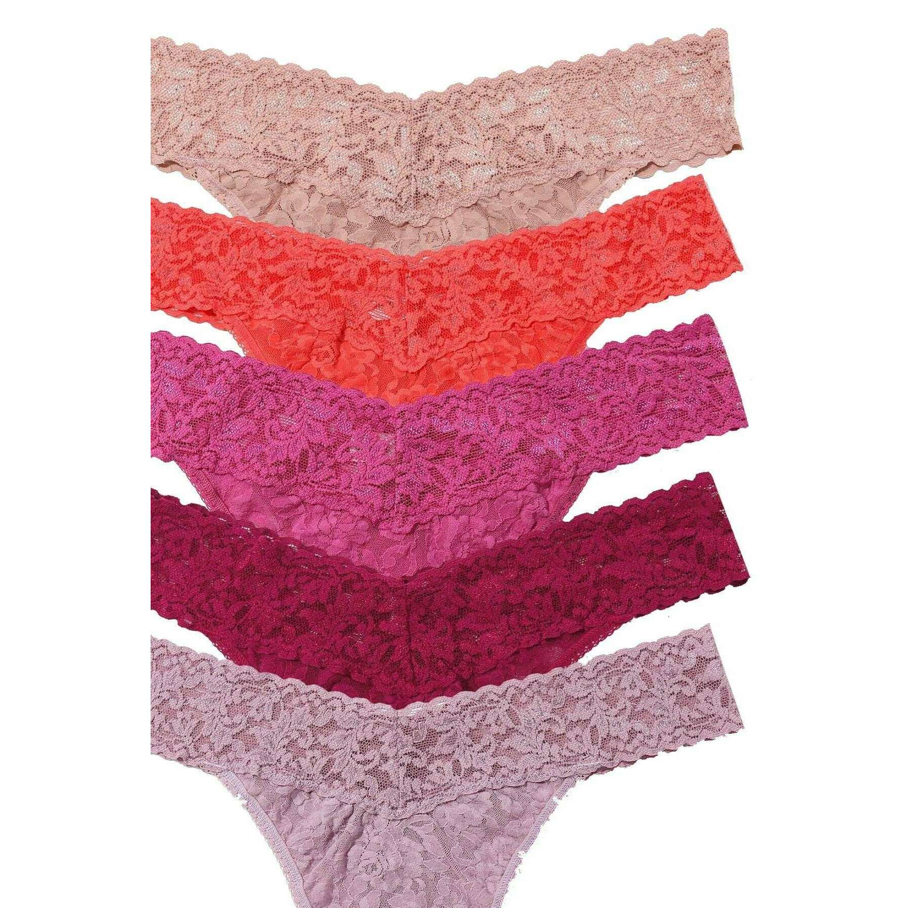 Hanky Panky Signature Lace Original Rise 5 Pack Thong - Desert Rose/Neon Coral/Bright Amethyst