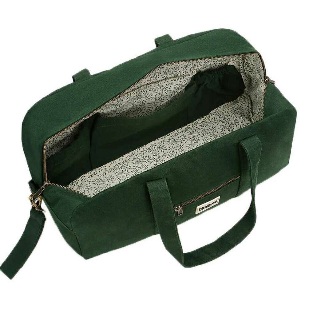 Manufactured from 100% organic cotton (500g/m2) is this forest green unisex basile baby bag by the designer Hindbag. It measures 28cm(height) x 48cm(width) x 19cm(depth). All the bags come complete with hindbag packaging. The Hindbag Basile Baby Bag - Forest Green is a large capacity organic cotton changing bag designed to accompany parents on their everyday journeys and longer outings. With enough room to hold all your baby s essentials, this bag features five pockets for organizing items. The velcro straps can be attached to a stroller for hands-free walking or pushing the stroller, while the adjustable handle gives the option to carry by hand or over the shoulder. The colourful interior lining adds a unique artisanal touch to this baby diaper bag.